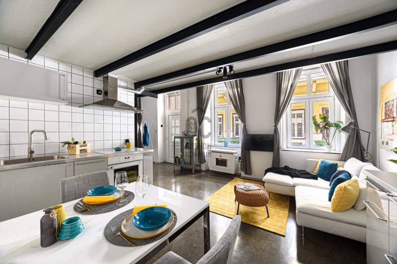 RENDKÍVÜL CSENDES, DESIGNOS, FELÚJÍTOTT LOFT STÍLUSÚ LAKÁS, AHOVÁ ÖRÖM HAZATÉRNI!A Corvin sétánytól egy kőhajításnyira, egy minden részletében átgondolt, modern, design loft stílusú lakás keresi új tulajdonosát!Ez az állógalériás, loft stílusban kialakított, nagy belmagasságú, földszinti lakás nem csupán egy ingatlan, hanem igazi otthon — ahol a kényelem, a minőség és a modern városi életérzés találkozik.A lakás az utóbbi 3 évben teljeskörűen fel lett újítva, beleértve a villanyvezetékek cseréjét is, és bútorozottan, berendezve eladó, így azonnal költözhető — csak a bőröndjét kell hoznia!A lakás – modern, kétszintes, azonnal költözhetőA belső, csendes zöld udvarra néző lakás teljesen felszerelt és bútorozott.A földszinten tágas, amerikai konyhás nappali, gépesített konyha (Bosch mosogatógép, indukciós főzőlap, sütő, hűtő), tükrös gardrób, épített zuhanykabin, külön WC és tároló található.A galériaszint acélszerkezetű, stabil, 220 cm belmagasságú.Az emeleten tágas hálószoba és dolgozósarok kapott helyet – ideális home office-hoz is.Az épület – zöld udvar, rendezett közösségA társasház anyagi helyzete stabil, a lakóközösség összetartó.Rendezett, gondozott belső udvar, zárt kerékpártárolóval – igazi ritkaság a belvárosban.A közművek a házban nemrég megújultak.A környék – ahol minden egy karnyújtásnyira vanKiváló közlekedés: az M3-as metró Klinikák megállója 3 perc sétára, a Corvin-negyed metró és a 4–6-os villamos 6 perc gyalog.A Corvin sétány, éttermek, boltok, kávézók, fitnesztermek és a Corvin Pláza néhány perc alatt elérhetők.Az egyetemek közelsége (Semmelweis, ELTE, Corvinus, NKE) miatt befektetésnek is tökéletes.Tartozik hozzá egy 6 m²-es, külön zárható tároló a száraz pincében.Befektetésnek és otthonnak is tökéletes!!!Ha szerelem volt első látásra, ne habozzon, hívjon bátran!