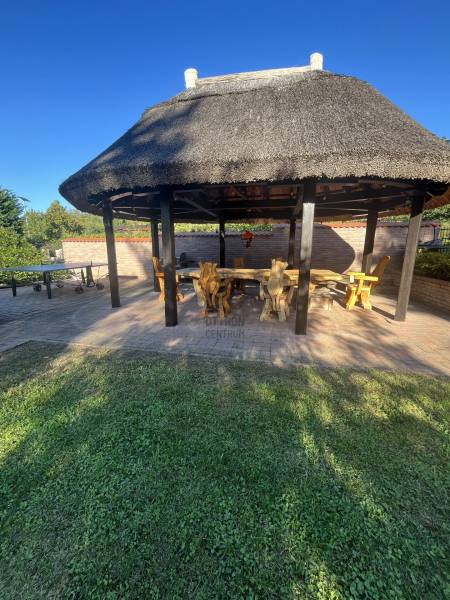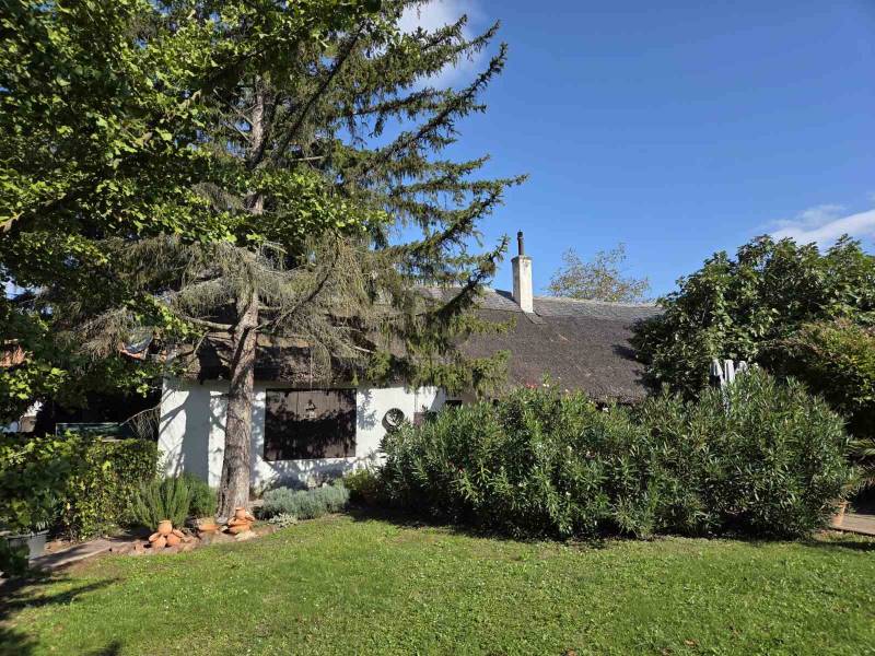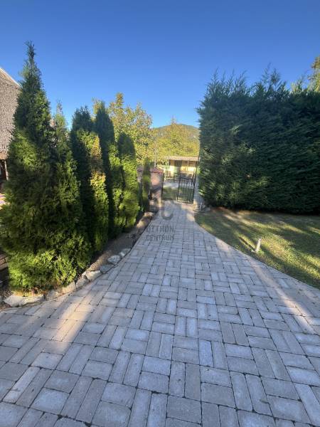 Badacsonytomaj-Badacsonyörs belterületi részén vált eladóvá ez az autentikus jegyekkel bíró, lakóházként bejegyzett ingatlan plusz telekkel, mely valamikor az 1950-es években épült és a folyamatos karbantartásnak valamint felújításoknak köszönhetően megőrizte eredeti jellegét és hangulatát is!A 3323 nm-es telek közművesített, víz, villany és csatorna is bevezetésre került, gáz az utcában található.A ház fűtéséről és hűtéséről hőszivattyús rendszer gondoskodik, a fűtést egy fatüzelésű kis kályha is kiegészíti.A ház hasznos alapterülete 65 négyzetméter, elosztását tekintve egy konyha-étkező, folyosó, 3 szoba, fürdőszoba - wc, valamint háztartási helyiség került kialakításra az épületben.A kert hátsó részében található egy hangulatos kerti tó, amit egy vörös levelű japán juharfa tesz teljessé. A telek végében egy 40 négyzetméteres alapterülettel rendelkező szaunaház került kialakításra, benne 8 személyes finn szauna, 9 kw-os kályhával, a falon egy parajdi sóképpel, zuhannyal, külső pihenővel, ahonnan a kilátás a Badacsonyra néz.A telek részén, egy modern, 30 négyzetméteres hűthető-fűthető mobilház található rajta, amely kis nyaralónak is tökéletes választás, emellett pedig helyet kapott még egy 6 személyes lakókocsi és egy régebbi, tárolóként funkcionáló, tégla épület is a telken belül, valamint egy fedett kiülő/ terasz.A kert szemet gyönyörködtető, az épület előtt kiépített teraszon helyett kapott egy jakuzzi, társalgásra alkalmas kiülő rész és sütögető helyiség.Elhelyezkedéséből adódóan a telek egésze tájpanorámás a környező tanúhegyekre. Ajánlom az ingatlant mindazok figyelmébe, akik a mindennapi nyüzsgésből kiszakadva a megérdemelt pihenést nyugodt környezetben szeretnék eltölteni távol a város zajától!Kérdés esetén, keressen bizalommal az elérhetőségek egyikén.
