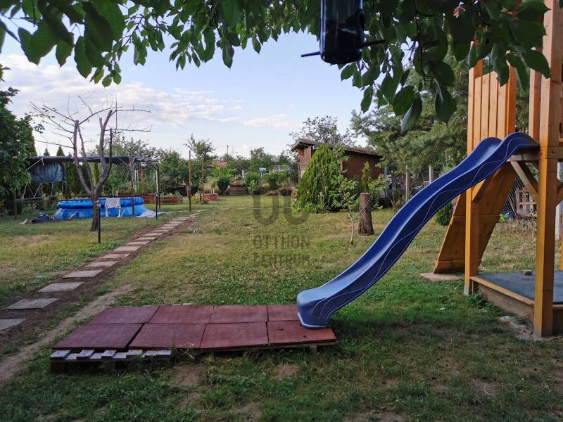 Győr külterületén, Sashegyen, a városhoz közel, mégis csendes és nyugodt környezetben eladó hétvégi, hobbi kert nyaralóval.A 962 m²-es kert bőségesen termő gyümölcsfákkal van telepítve, amelyek egész szezonban biztosítják a friss gyümölcsöt. Ideális választás mind az aktív kikapcsolódáshoz, mind a nyugodt pihenéshez. A hatalmas diófa árnyékában elhelyezett függőszékek igazi felfrissülést nyújtanak a nyári melegben. Esténként pedig grillezésre vagy bográcsozásra is lehetőség nyílik az erre kialakított helyen, illetve a kert végében található második sütögetőnél, ami nagyobb társaság számára is ideális.A gyermekek számára masszív játszótér, trambulin és egy medencének kialakított hely teszi még élvezetesebbé a kertet.A telken egy 30 m²-es, könnyűszerkezetes, részben alápincézett hétvégi ház található, amely felújítás/átalakítás alatt áll, de jelenleg is teljes körűen használható. Kialakításra került benne egy hálószoba, konyha-étkező és fürdőszoba, melyek belső befejezése még várat magára, de a ház már most is használható. A házhoz tartozik egy tágas, 24 m²-es fedett terasz, amely nagyobb társaság számára is kényelmes helyet biztosít. A pince kiválóan alkalmas termények tárolására.A ház téliesítése még nem történt meg, de kisebb ráfordítással könnyedén megoldható. Az áramellátás 32 amperesre bővítve, így az elektromos fűtés biztosított, illetve igény esetén klímával is megoldható. A főzés gázpalackról működő gáztűzhellyel lehetséges, a konyha teljes értékű. Vezetékes ivóvíz és fúrt kút is rendelkezésre áll, a szennyvíz elvezetése derítőbe történik.A telken található egy nagyméretű tároló is, amely a kerti eszközök elhelyezésére szolgál.Az utca rendezett, karbantartott, murvával felszórt. Az egész éves szemétszállítás megoldott.Hitelre van szüksége?Az Otthon Centrum, az ország egyik legnagyobb és legmegbízhatóbb hitelközvetítője, teljes körű és díjmentes hitelügyintézéssel, valamint biztosításkötéssel segíti ügyfeleit.Kérje kollégáinktól személyre szabott ajánlatát, és találja meg a legjobb megoldást gyorsan és egyszerűen!Ez az ingatlan a \"Hűség csomag\" megbízási portfólióhoz tartozik. Részletek az Otthon Centrum weboldalán.
