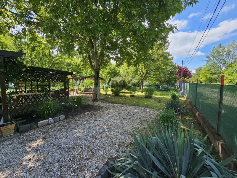 Képzeld el a napod így:Reggel kinyitod a faház ajtaját, beleszippantasz a friss levegőbe, és leülsz a kertbe a kávéddal. Körülötted gyümölcsfák, a madarak csicseregnek, te meg azon gondolkodsz, hogy inkább barackot vagy szilvát kapj le tízóraira. A ház maga egy 44 m²-es, kétszobás, tárolós kis kuckó, ami pont annyi, amennyit rendben lehet tartani anélkül, hogy rámenne a hétvégéd. A telek viszont 1126 m², körbekerítve, szépen karbantartva – vagyis van hely a grillnek, függőágynak, de akár egy kisebb focimeccsnek is. A praktikum is pipa: fúrt kút, hogy a virágok ne szomjan haljanak, és egy fedett kocsibeálló, ahol az autó árnyékban pihenhet, miközben te a kertben napozol. Dél körül lesétálsz a Dunához, ami csak 500 méter, szóval tényleg tíz perc flip-flopban, törölközővel a válladon. Ott egy gyors csobbanás, majd vissza a házhoz, ahol akár hűs árnyékban szundizhatsz a fák alatt. Ha épp bevásárolni támad kedved vagy beülnél egy fagyira, a központ mindössze 10 perc séta – nincs autózás, nincs dugó, csak egy laza séta. Este pedig jöhet a haveri sütögetés a kertben, a csillagos ég alatt. És a legjobb rész? A kert karbantartásához minden felszerelés itt marad, benne van az árban. Magyarul beköltözöl, és már az első nap olyan a vibe, mintha mindig is itt nyaraltál volna.Szóval ha szeretnél egy saját kis nyugalomszigetet a Duna közelében, ahol minden adott a lazuláshoz, akkor ez a hely neked szól.Ez a hirdetés az Otthon Centrum Árgaranciás csomagjának része, melyről bővebb információt a http://www.oc.hu/felezocsomag weboldalon találEz az ingatlan a \"Felező csomag\" megbízási portfólióhoz tartozik. Részletek az Otthon Centrum weboldalán.