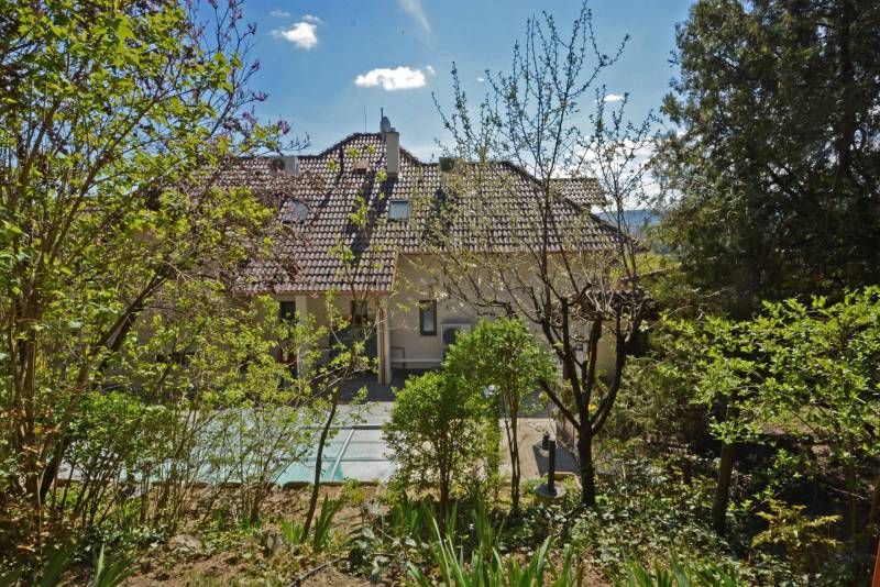 Alap adatok:- 1743 nm telekterület.- Két helyrajzi szám. ( 892+851 nm)- 2016-ban épült 3 szintes panorámás luxus családi ház, 4 lakószobával, panorámás nappalival,342 nm hasznos alapterülettel.- 60 nm-es panorámás terasz.- 4 autó részére garázs elektromos töltőfejekkel.- 6 autó részére gépkocsi beálló.- Fedett úszómedence,- 6 Kw szaldós napelem rendszer.- Hőszivattyús, elektromos, gáz és vegyes tüzelésű fűtés ki van alakítva és igény szerint kombinálható.- A világ legbarátságosabb full panorámás nyári konyhája tetővel, pultokkal raktárhelyiségekkel.- Elvehetetlen panoráma a Dunakanyarra- Egy 28 nm-es két szobás vendégház a másik helyrajzi számú telken.Verőce kis település a Duna bal partján 4160 lakossal. Budapest belvárosától a távolság 36 km légvonalban. 52 km közúton, mely gépkocsival kb. 1 óra. Vonattal Budapest Nyugati Pályaudvarról Verőce vasútállomásig Z70-es zónázó vonattal 31 perc.A telkek a település központjától 50 méterre, a vasútállomástól 200 méterre, a Duna partján lévő sétánytól 250 méterre, a kezdődő domboldalon helyezkednek el. Teraszos kialakítással különülnek el egymástól. Az alsó telek talajfeltöltésének köszönhetően mindkét ingatlan kertjéből örök panoráma nyílik a Dunakanyarra és a szemközti Pilis hegyvonulatára.Két telek, két helyrajzi szám, két utcai kapu, két külön közmű bekötés. Dologösszességben akarjuk értékesíteni a két telket.Az alsó telek 892 nm-es, a feltöltésnek köszönhető nagyrészt sík területekkel rendelkezik, rajta 3 szintes, szintenként 100 nm alapterületű családi házzal, melynek építését 2015 ben kezdték, a használatba vételi engedélyét 2019-ben adták ki.A földszinten a fűtött garázsfeljárón keresztül egy sík gépkocsibeálló mögött közel 60 nm -es, négy gépkocsi tárolására alkalmas garázs helyezkedik el, benne elektromos autók gyorstöltésére alkalmas fejegységgel. Mögötte 15 nm-es bortároló található. A földszinti folyosóról nyílik egy 10 nm-es helyiség, ahol a szauna előkészítés és egy zuhanyzó kap helyet. A szauna ezidáig nem került beépítésre, jelenleg raktárként funkcionál. A földszinten még egy különálló wc is ki lett a alakítva, ami az előszobából nyílik.Az első emeletre lépcsősor vezet, ahol egy 5.5 méteres belmagassággal rendelkező, hatalmas üvegablakokkal a Dunakanyarra panorámás nappali szoba található, ahonnan a szintén Dunai panorámás, közel 60 nm alapterületű teraszra juthatunk ki. A terasszal egy szintben van a gondozott pázsitos kert, ami egy támfallal különül el az alatta lévő telektől, a rajta lévő ház fölé emelve azt. A kertből szintén korlátlan a panoráma.A nappali szobából nyíló konyha és kamra a földszint és az első emeleti előkert közti rézsűs virágoskertre néző ablakokkal rendelkezik. Az első emeleti nappaliból nyílik az a háztartási helység, ahol a mosógépek és az épület gázcirkóval valamint hőszivattyúval kombinált fűtés és meleg víz rendszerének gépészete található.A nappaliból nyílik a szülői háló, melynek saját fürdőszobájában pezsgőfürdős kád, dupla mosdókagyló és wc kap helyet.Az első emeleti terasz és kert szintjén található az épület mellett jobb oldalt elterülő telekrész, ahol egy fedett kültéri konyha, és a hozzá tartozó 15 nm-es külső tároló kap helyet. Az oldalfalak nélküli konyhából elvehetetlen panoráma nyílik a Dunára és a környező hegyekre. A külső konyha hátsó oldalfalát a mellette lévő telek szinteltolását tartó támfal adja. A külső konyha tetőszerkezetén találhatóak az a napelem rendszer, mely a szaldós áram visszatáplálási rendszer gerincét alkotja.Az épület első emeletének szintjén a ház mögötti kertrészen van kialakítva az a csúsztatható boltíves polikarbonát tetővel ellátott kültéri medence, mely ellenáramoltatóval, fűtő berendezéssel és nagy teljesítményű vízforgató és homok alapú szűrőberendezéssel van ellátva. A medence melletti kültéri zuhanyzó alatt található a medence gépészeti egysége, míg a belépő vízrendszer központja a medence melletti tároló épületben helyezkedik el. A medence mellől indul az a széles lépcsősor, mely a fölötte lévő telekre vezet, mely ettől a szinttől egy támfallal különül el.A ház harmadik szintjén a nappalival egy légtérben, onnan a nappali ablakain keresztül a Dunakanyarra panorámás felső galéria kap helyet, ahonnan a harmadik szint három lakószobája érhető el. A ház jobb felében lévő két különálló szobához egy zuhanyzós fürdőszoba tartozik, míg a ház bal oldali részén lévő nagyobb hálószoba önálló zuhanyzós fürdőszobával rendelkezik.Az épület elektromos redőnyökkel szerelt. A fűtést és a meleg víz ellátást gáz cirkó és hőcserélős fűtőberendezés kombinált használatával lehet megoldani, mely lehetőséget biztosít arra, hogy az éves gázhasználatot a támogatott lakossági mennyiség alatt lehessen tartani. A szaldós napelem rendszernek köszönhetően elektromos gépjárművek töltése és a hőcserélős fűtési rendszer üzemeltetése mellett is a lakossági támogatott szint határértéke alatt tudják tartani a fogyasztást a jelenlegi tulajdonosok.A felső 851 nm-es, enyhén emelkedő telek. Rajta 28 nm alapterületű két hálószobás, zuhanyzós fürdőszobával, wc-vel és külső tárolóval ellátott vendégház áll, mely jelenleg irodaként funkcionál. Fűtése gáz konvektor és elektromos padlófűtés, de újonnan épült vegyes tüzelésű kémény már rendelkezésre áll, akár kályhának akár kandallónak. A telek ősfás, egyik részén gondozott, futtatott szőlőtőkékkel. Az alatta lévő telektől egy támfal választja el, melyben beépítet