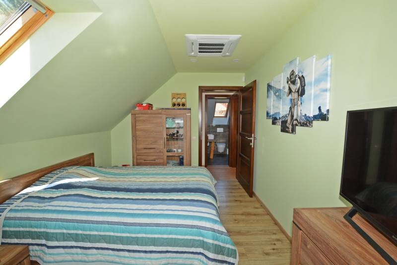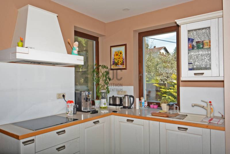 Alap adatok:- 1743 nm telekterület.- Két helyrajzi szám. ( 892+851 nm)- 2016-ban épült 3 szintes panorámás luxus családi ház, 4 lakószobával, panorámás nappalival,342 nm hasznos alapterülettel.- 60 nm-es panorámás terasz.- 4 autó részére garázs elektromos töltőfejekkel.- 6 autó részére gépkocsi beálló.- Fedett úszómedence, - 6 Kw szaldós napelem rendszer.- Hőszivattyús, elektromos, gáz és vegyes tüzelésű fűtés ki van alakítva és igény szerint kombinálható.- A világ legbarátságosabb full panorámás nyári konyhája tetővel, pultokkal raktárhelyiségekkel.- Elvehetetlen panoráma a Dunakanyarra- Egy 28 nm-es két szobás vendégház a másik helyrajzi számú telken.Verőce kis település a Duna bal partján 4160 lakossal. Budapest belvárosától a távolság 36 km légvonalban. 52 km közúton, mely gépkocsival kb. 1 óra. Vonattal Budapest Nyugati Pályaudvarról Verőce vasútállomásig Z70-es zónázó vonattal 31 perc.A telkek a település központjától 50 méterre, a vasútállomástól 200 méterre, a Duna partján lévő sétánytól 250 méterre, a kezdődő domboldalon helyezkednek el. Teraszos kialakítással különülnek el egymástól. Az alsó telek talajfeltöltésének köszönhetően mindkét ingatlan kertjéből örök panoráma nyílik a Dunakanyarra és a szemközti Pilis hegyvonulatára. Két telek, két helyrajzi szám, két utcai kapu, két külön közmű bekötés. Dologösszességben akarjuk értékesíteni a két telket.Az alsó telek 892 nm-es, a feltöltésnek köszönhető nagyrészt sík területekkel rendelkezik, rajta 3 szintes, szintenként 100 nm alapterületű családi házzal, melynek építését 2015 ben kezdték, a használatba vételi engedélyét 2019-ben adták ki. A földszinten a fűtött garázsfeljárón keresztül egy sík gépkocsibeálló mögött közel 60 nm -es, négy gépkocsi tárolására alkalmas garázs helyezkedik el, benne elektromos autók gyorstöltésére alkalmas fejegységgel. Mögötte 15 nm-es bortároló található. A földszinti folyosóról nyílik egy 10 nm-es helyiség, ahol a szauna előkészítés és egy zuhanyzó kap helyet. A szauna ezidáig nem került beépítésre, jelenleg raktárként funkcionál. A földszinten még egy különálló wc is ki lett a alakítva, ami az előszobából nyílik.Az első emeletre lépcsősor vezet, ahol egy 5.5 méteres belmagassággal rendelkező, hatalmas üvegablakokkal a Dunakanyarra panorámás nappali szoba található, ahonnan a szintén Dunai panorámás, közel 60 nm alapterületű teraszra juthatunk ki. A terasszal egy szintben van a gondozott pázsitos kert, ami egy támfallal különül el az alatta lévő telektől, a rajta lévő ház fölé emelve azt. A kertből szintén korlátlan a panoráma.A nappali szobából nyíló konyha és kamra a földszint és az első emeleti előkert közti rézsűs virágoskertre néző ablakokkal rendelkezik. Az első emeleti nappaliból nyílik az a háztartási helység, ahol a mosógépek és az épület gázcirkóval valamint hőszivattyúval kombinált fűtés és meleg víz rendszerének gépészete található.A nappaliból nyílik a szülői háló, melynek saját fürdőszobájában pezsgőfürdős kád, dupla mosdókagyló és wc kap helyet.Az első emeleti terasz és kert szintjén található az épület mellett jobb oldalt elterülő telekrész, ahol egy fedett kültéri konyha, és a hozzá tartozó 15 nm-es külső tároló kap helyet. Az oldalfalak nélküli konyhából elvehetetlen panoráma nyílik a Dunára és a környező hegyekre. A külső konyha hátsó oldalfalát a mellette lévő telek szinteltolását tartó támfal adja. A külső konyha tetőszerkezetén találhatóak az a napelem rendszer, mely a szaldós áram visszatáplálási rendszer gerincét alkotja. Az épület első emeletének szintjén a ház mögötti kertrészen van kialakítva az a csúsztatható boltíves polikarbonát tetővel ellátott kültéri medence, mely ellenáramoltatóval, fűtő berendezéssel és nagy teljesítményű vízforgató és homok alapú szűrőberendezéssel van ellátva. A medence melletti kültéri zuhanyzó alatt található a medence gépészeti egysége, míg a belépő vízrendszer központja a medence melletti tároló épületben helyezkedik el. A medence mellől indul az a széles lépcsősor, mely a fölötte lévő telekre vezet, mely ettől a szinttől egy támfallal különül el.A ház harmadik szintjén a nappalival egy légtérben, onnan a nappali ablakain keresztül a Dunakanyarra panorámás felső galéria kap helyet, ahonnan a harmadik szint három lakószobája érhető el. A ház jobb felében lévő két különálló szobához egy zuhanyzós fürdőszoba tartozik, míg a ház bal oldali részén lévő nagyobb hálószoba önálló zuhanyzós fürdőszobával rendelkezik.Az épület elektromos redőnyökkel szerelt. A fűtést és a meleg víz ellátást gáz cirkó és hőcserélős fűtőberendezés kombinált használatával lehet megoldani, mely lehetőséget biztosít arra, hogy az éves gázhasználatot a támogatott lakossági mennyiség alatt lehessen tartani. A szaldós napelem rendszernek köszönhetően elektromos gépjárművek töltése és a hőcserélős fűtési rendszer üzemeltetése mellett is a lakossági támogatott szint határértéke alatt tudják tartani a fogyasztást a jelenlegi tulajdonosok.A felső 851 nm-es, enyhén emelkedő telek. Rajta 28 nm alapterületű két hálószobás, zuhanyzós fürdőszobával, wc-vel és külső tárolóval ellátott vendégház áll, mely jelenleg irodaként funkcionál. Fűtése gáz konvektor és elektromos padlófűtés, de újonnan épült vegyes tüzelésű kémény már rendelkezésre áll, akár kályhának akár kandallónak. A telek ősfás, egyik részén gondozott, futtatott szőlőtőkékkel. Az alatta lévő telektől egy támfal választja el, melyben beép
