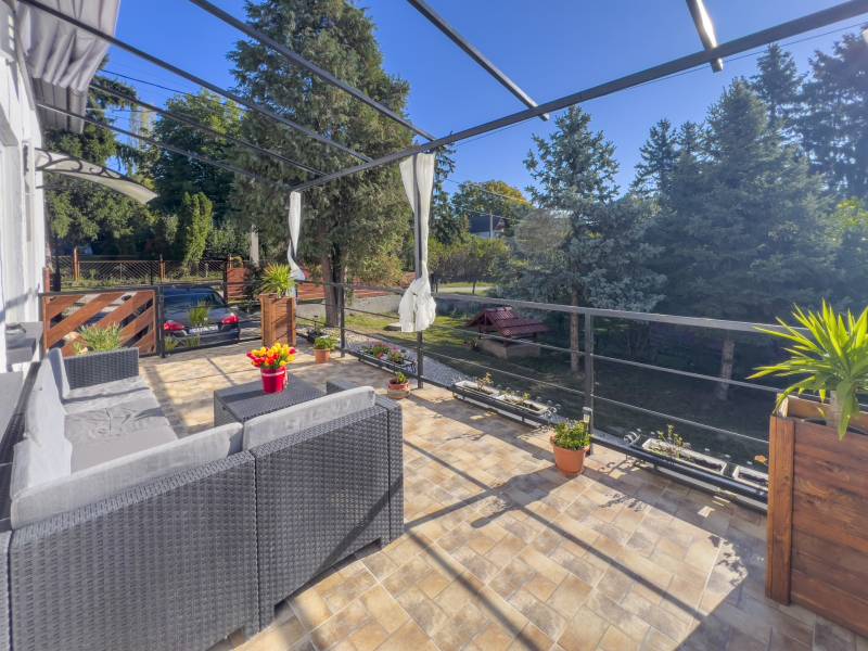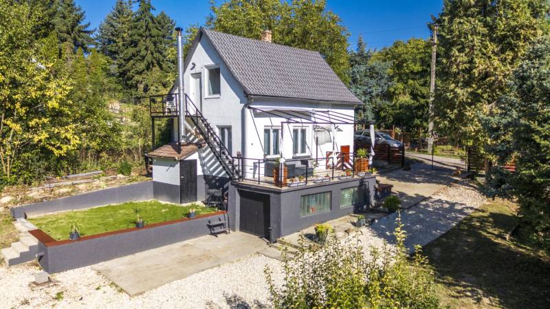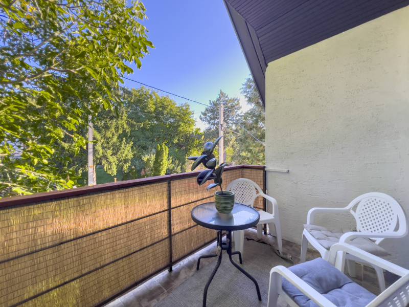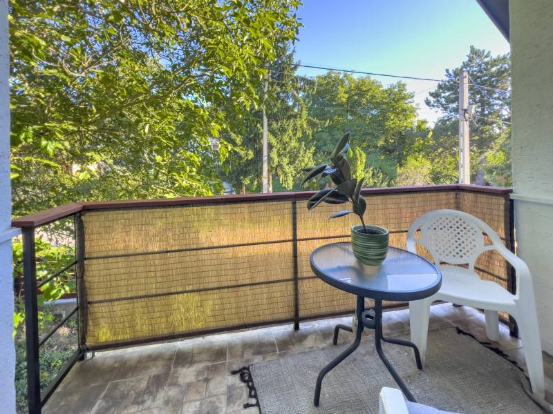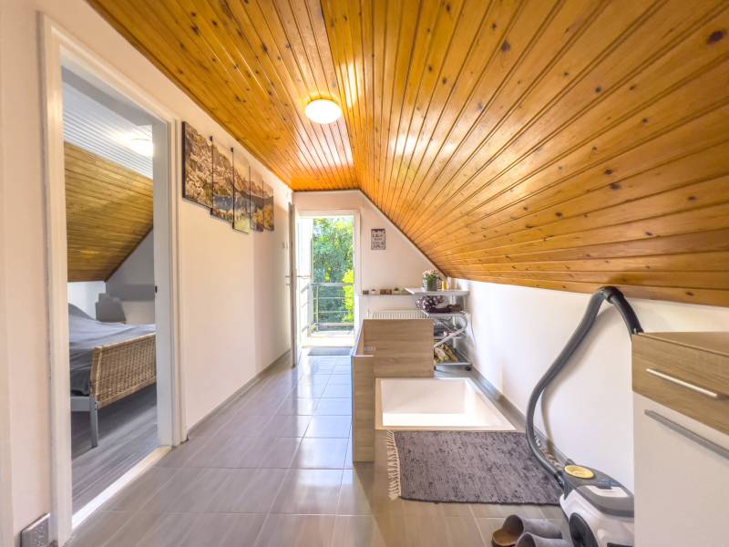 -erkélyAz emeleti lakrész a házon belülről és kívülről is lépcsőn megközelíthető.A villany bevezetve (három fázis, jöhet a napelem!) illetve van 2 fúrt kút és egy 10 méter mély ásott kút is. A kútvíz bevizsgált, ivóvíz tisztaságú.A szennyvíz elvezetése az emésztőbe történik.Optikai kábel kint a ház előtt (t-home), kukás autó heti szinten jár.