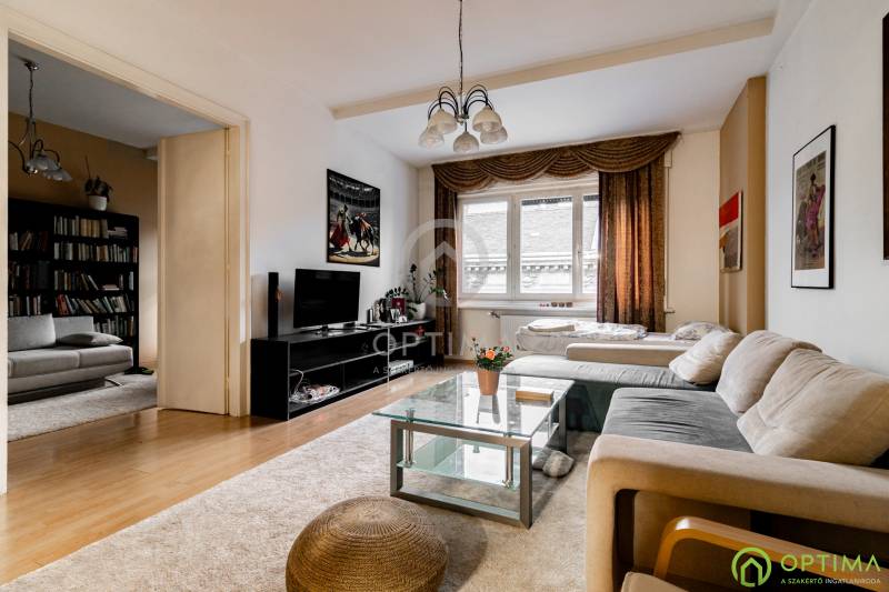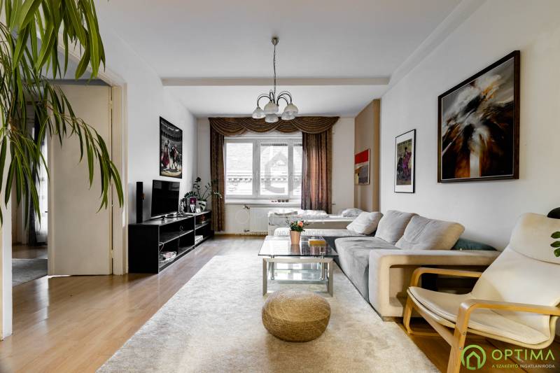 NAGYPOLGÁRI LAKÁS A PALOTANEGYEDBEN Budapest belvárosában, a PALOTANEGYEDBEN kínálom megvételre ezt a VI. emeleti, 91 m2 alapterületű, 2 + 1 FÉLSZOBÁS téglalakást. Az ingatlanban az elmúlt évek során az alábbi felújítások történtek:- felújításra kerültek az ablakok (ezen alkalommal dupla rétegű üvegek kerültek beépítésre), - cserére kerületek a burkolatok a konyhában és a fürdőben egyaránt,- a szobákban pedig laminált padló került a parketta helyére. A lakás melegentartásáért házközponti fűtés felel. A házban 3 kazán biztosítja ezt, melyből kettő most kerül lecserélésre. A közös költség tartalmazza a fűtés díját, illetve a korálan vízfogyasztását is. A társasház karbantartása folyamatos. A legnagyobb összegű felújításon már túl van a ház, mivel 2020-ban a ház teljes homlokzatát felújították. Ennek köszönhetően a közös költség összege jelentősen csökkeni fog a közeljövőben. A lakás megtekintése miatt VÁROM HÍVÁSÁT akár hétvégén vagy az esti órákban egyaránt!