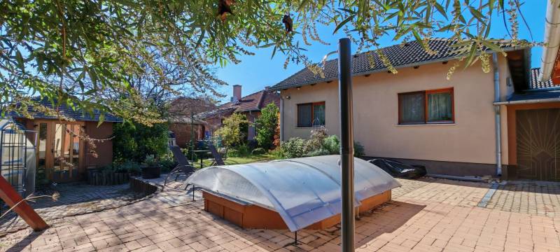 Fedezd fel ezt a kiváló állapotú, használt lakóingatlant Vámosszabadiban, Győr-Moson-Sopron megyében!Az ingatlan 2002-ben épült 38-as Porotherm téglából, nettó 121 négyzetméteres alapterülettel mely egy tágas, 1233 négyzetméteres telken helyezkedik el, amely ideális választás lehet családok számára, vagy akár befektetési céllal is.A házban nappali + három szoba található, így bőven van hely a családi élethez, valamint a vendégek fogadásához, az ingatlan további helyiségei: konyha, étkező, kamra, előszoba, közlekedő, gardrób, háztartási helyiség, fürdőszoba+wc és egy külön mellékhelyiség.A terasz mérete 10 négyzetméter, amely tökéletes helyszín lehet a reggeli kávézáshoz vagy a nyári baráti összejövetelekhez.A kert rendezett, mely automata öntözőrendszerrel van ellátva, így a zöld területek karbantartása gyerekjáték.Ezen kívül a kerti tároló praktikus megoldást nyújt a szerszámok és egyéb kerti eszközök tárolására, így a kert mindig rendezett és ápolt maradhat.Az otthon melegéről gáz-cirkó kazán gondoskodik, radiátoros hőleadással, ami gazdaságos és kényelmes megoldás a téli hónapokban, további alternatívaként egy hangulatos cserépkályha is helyet kapott, a légkondicionáló berendezés pedig a nyári melegben biztosítja a kellemes hőmérsékletet.A környék csendes és biztonságos, tökéletes választás családoknak.Az ellátottság kiváló, hiszen a közelben található bolt, iskola és orvosi rendelő is.Az ingatlan kitűnő közlekedési lehetőségekkel rendelkezik, így könnyedén elérheted a város többi részét autóval vagy tömegközlekedéssel egyaránt.A parkolóhelyek tekintetében az ingatlanhoz kapcsolódó garázs áll rendelkezésedre, amelyben akár két autó is kényelmesen elfér.Ez az ingatlan nemcsak egy otthon, hanem egy életstílus is, amely a természet közelségét és a városi élet előnyeit ötvözi, ha kérdéseid lennének, vagy szeretnéd személyesen is megtekinteni ezt a csodás ingatlant, bátran keress bizalommal!Itt az idő, hogy megtaláld álmaid otthonát!Teljes körű ügyintézéssel:- Ügyvéd- Biztosítás- Generálkivitelezés- Ingatlanértékesítés- Teljeskörű ingatlanfelújítás- Bankfüggetlen hiteltanácsadás- CSOK, babaváró, áfa visszaigénylés - állunk rendelkezésére!