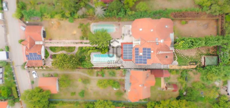 Eladó egy különleges, négy szintes családi ház páratlan környezetben, természetvédelmi terület szomszédságában, 1000 m²-es telken!Ha tágas, kényelmes és fenntartható otthont keresel, ahol a nyugalom, a friss levegő és a panoráma egyszerre adott, akkor ez a ház neked való!Főbb jellemzők:375 m² főépület + 35 m² garázsFedett medence hőszivattyús fűtésselZárt garázs két autóra (EV-töltővel) + fedett kocsibeálló6 nagyobb és 2 kisebb hálószobaTágas amerikai konyhás nappali étkezővelMinden szinten wc/mosdóKlíma minden helyiségbenÓriási fedett terasz lenyűgöző panorámávalTeljes UTP-hálózat szobánként, központi szerverhez bekötveNapelem rendszer (12,8 kWh) + hőszivattyús fűtés → rezsimentes működés (EV-töltés is beleértve)Háromfázisú elektromos hálózat (3×32A)Gáz bekötve, használaton kívül.Környezet és elhelyezkedés:A ház nyugodt, zöldövezeti faluban található, ahol minden fontos intézmény helyben elérhető: bolt, gyógyszertár, orvosi rendelő, iskola, óvoda, buszmegálló és még kávézó is.