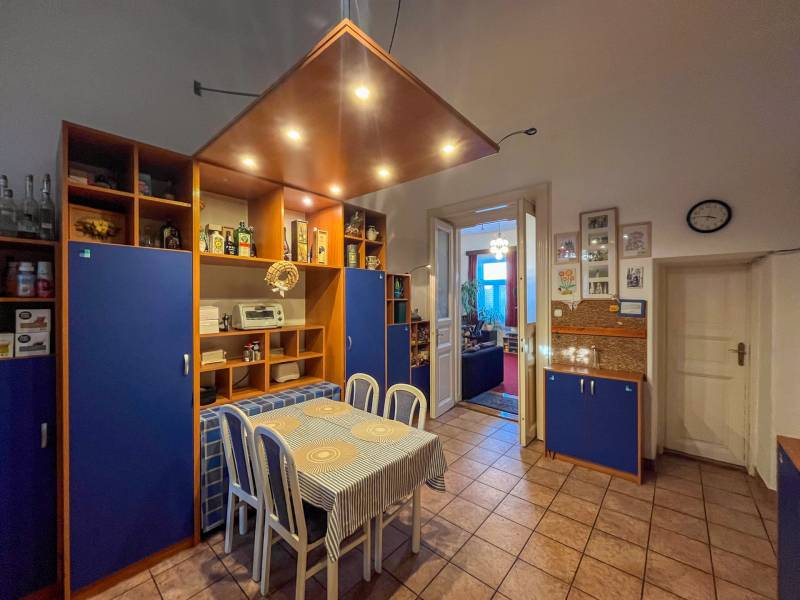 Eladó napfényes, tágas lakás az Oktogon közelében – akár két lakás is kialakítható!Lokáció: Budapest VI. kerület, Oktogon közvetlen közelébenAlapterület: 122,4 m² + 12,1 m² galériaSzobák száma: 3 hálószoba + nappali + étkezőEmelet: 3. (legfelső szint)Lift: nincsÁllapot: jó műszaki állapotúTípus: téglaépítésű társas házi lakásFőbb jellemzők:Napfényes, tágas terek, 3,8 m belmagassággalGalériázott szobák – ideális gyerekeknek vagy extra tárolásraKiváló elosztás, akár két önálló lakóegység is kialakíthatóUdvari gépkocsibeállás (5.000 Ft/hó)Alacsony közös költség: 18.300 Ft/hóCirkófűtés + 2 db gázüzemű cserépkályhaHő- és hangszigetelt 3 rétegű nyílászárókCsendes, rendezett ház – komoly felújítás nem várhatóKiváló közlekedés: metró, villamos, busz, troli pár perc sétára