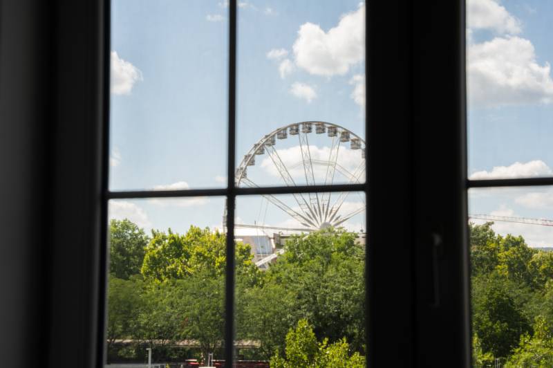 Az Erzsébet tér látványa nem csak díszlet – ez az otthon része. A hatalmas ablakokon át beszűrődő fény, a város mozgása és ritmusa minden pillanatban jelen van, mégis tökéletes egyensúlyban áll a belső tér letisztult nyugalmával.Az enteriőr elegáns, mégis élhető: modern vonalvezetés, finoman megválasztott anyagok, arányos terek. A belső udvarra néző, privát terasz egy másik világ – csendes, intimebb, és éppoly figyelemre méltó, mint a kilátás maga.Ez a lakás nemcsak egy hely a város szívében, hanem egy tudatosan felépített életstílus. Egyensúly város és otthon, látvány és nyugalom között. Egy élmény – nap mint nap.