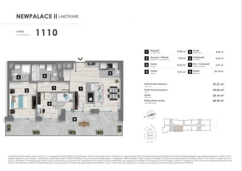 Projekt bemutatásaNew Palace II. ütemA New Palace a XIII. kerület csendes részén épül. A megújult kertvárosias környezet a pesti oldal egyik legkedveltebb részei közé tartozik, az itt élők egyszerre élvezhetik a csöndes kis utcák nyugalmát és a belváros közelségét.A társasház különleges, extravagáns homlokzatával egyedi fiatalos dizájnjával, kiemelkedik a környező épületek közül és ezáltal lesz majd sokáig a környék ismert és meghatározó tájékozódási pontja. A már eddig is komoly fejlődésen és megújuláson átesett városrész a projekt megvalósulásával beírja magát a kerület új városrészei közé.A földszint + 12 emelet magas épületet elegáns, kertépítők által tervezet parkok veszik körül, megreformálva a társasház környezetét is. A zárt, csak a társasház lakói által megközelíthető udvaron fákkal, cserjékkel tarkított, füvesített zöldkert kerül kialakításra.A lakások két elegáns, egymástól elkülönülő lobbyn keresztül közelíthetőek meg, lépcsőházanként két-két lifttel. A lakáskínálatban az egyszobás lakástól egészen a négyszobásig mindenféle elosztású megoldás megtalálható, a kínálatban alig van két egyforma lakás. Minden lakás rendelkezik erkéllyel vagy terasszal, a földszinti és néhány exkluzív emeleti lakás pedig, intenzív zöldtetővel, saját kertrésszel.Figyelembe véve a jövő elvárásait, a társasház modern, környezetbarát, mennyezeti hűtő, -fűtő rendszerrel ellátott.Vevőinknek lehetőségük nyílik arra is, hogy megvásárolt otthonukat az utolsó részletig személyre szabhassák: módosítással élhetnek otthonuk elosztása tekintetében is, továbbá széles kollekcióból választhatnak meleg- és hideg burkolatokat. Az alapáras burkolatokon felül, elérhetőek feláras termékek is, mely biztosítja, hogy személyiségük otthonukban is vissza tükröződhessen.Az infrastruktúra is magáért beszél: a közeli Váci út kiváló közlekedése és bevásárlási lehetőségei, a megújult 3-as metró Gyöngyösi utcai megállója rövid sétával elérhető, hasonlóan az idilli hangulatú Gyöngyösi sétányhoz, mely a kerület egyik legkedveltebb részei közé tartozik. Szintén pár perc sétatávolságra a folyamatosan megújuló és minden igényt kielégítő Duna Pláza bevásárlóközpont (benne: SPAR, gyógyszertár, Rossmann, DM, Médiamarkt, tisztító, fodrászatok, virágbolt, Libri könyvesbolt, papír-írószerbolt és számos ruházati bolt. Kényelmesen megoldható a napi fogyasztási cikkek beszerzése is a nap bármely órájában a közvetlen közelben lévő Tesco áruházban és az üzletsoron lévő boltokban. A lakópark tágabb vonzáskörzetében de még mindig elérhető távolságban találjuk Újpest-központot, a Népszigetet és az Újpest vasútállomást.Irodánkban a legtöbb XIII. kerületi beruházás lakásai elérhetőek ügyfeleink számára.A jelen adatok tájékoztató jellegűek, ezért a Beruházó (sem a hirdető) azok változásával, vagy bármely attól való eltéréssel kapcsolatban semmilyen kötelezettséget, vagy felelősséget nem vállal.Az alaprajzokon ábrázolt berendezési tárgyak és bútorok, a burkolatok megjelenése nem képezi a szerződés tárgyát. A pontos felszereltségről a műszaki leírásban olvashat bővebben.Az aktuális lakáskínálatról és árakról érdeklődjön telefonon!