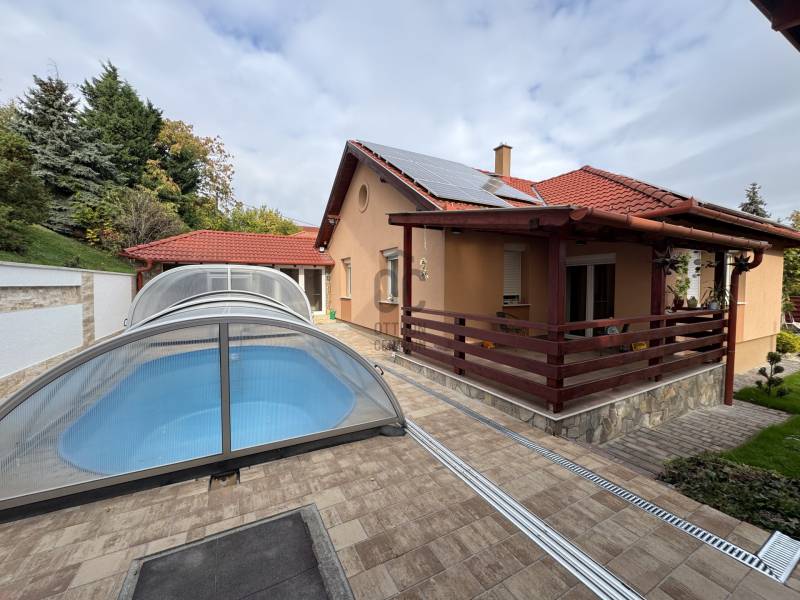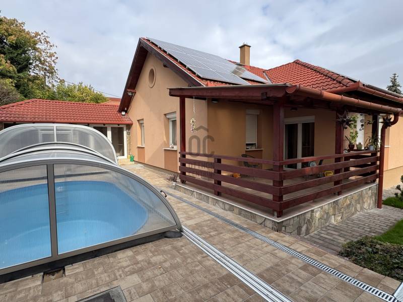 Érd Parkváros – Földszintes, újszerű családi ház medencével és napkollektorral!Érd csendes, zöldövezeti részén eladó egy igényesen karbantartott, nappali + 4 szobás, földszintes családi ház, 595 m²-es parkosított telken ,medencével, napkollektorral és számos extrával!Az 144 m²-es (nettó 119,86 m² + terasz) ingatlan 2011-ben épült, és azóta folyamatosan modernizálták – újszerű állapotban van.Főbb jellemzők:-nappali + 4 hálószoba-2 autó számára fedett beálló-padlófűtés + radiátorok, kondenzációs gázcirkó, 15 kW-os napkollektor-klíma, vízlágyító, beépített szÉF-fúrt kút, öntözőrendszer, kültéri medence, fedett grillező-új beltéri és kültéri ajtók, új utcafronti kerítés folyamatbanElhelyezkedés:Családi házas, nyugodt környezet, kiváló infrastruktúrávalIskola, óvoda, gyógyszertár, bevásárlási lehetőség pár perc távolságra.M7, M0 autópályák 5 perc, M6 10 perc alatt elérhető.Ez a ház ideális választás azoknak, akik modern, egyszintes otthont keresnek minőségi műszaki megoldásokkal és gondozott környezettel, Érd egyik legjobb részén.