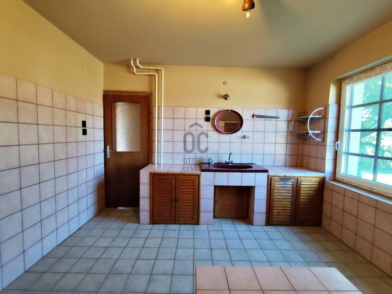 Eladásra kínálunk Kerekegyháza csendes, rendezett részén egy 130 m²-es, tégla építésű, szigetelt családi házat, 646 m²-es, összközműves telken. Az ingatlan 1989-ben épült, Bramac tetőcseréppel fedve, masszív szerkezettel és folyamatosan karbantartva.Elrendezés: nappali + 3 szoba (emeleten) , konyha, fürdőszoba-wc, pince és tároló (100 m²).Főbb jellemzők:Gázcirkó fűtés (új) és vegyestüzelésű kazán, padlófűtésselModern, műanyag nyílászárókRéz villanyvezetékek Pince és tároló helyiség biztosítja a kényelmet és a pakolási lehetőségetSzerelőaknaAz ingatlan ideális választás családok számára, akik tágas otthont keresnek nyugodt környezetben, jó közlekedési adottságokkal.Ez az ingatlan a \"Felező csomag\" megbízási portfólióhoz tartozik. Részletek az Otthon Centrum weboldalán.