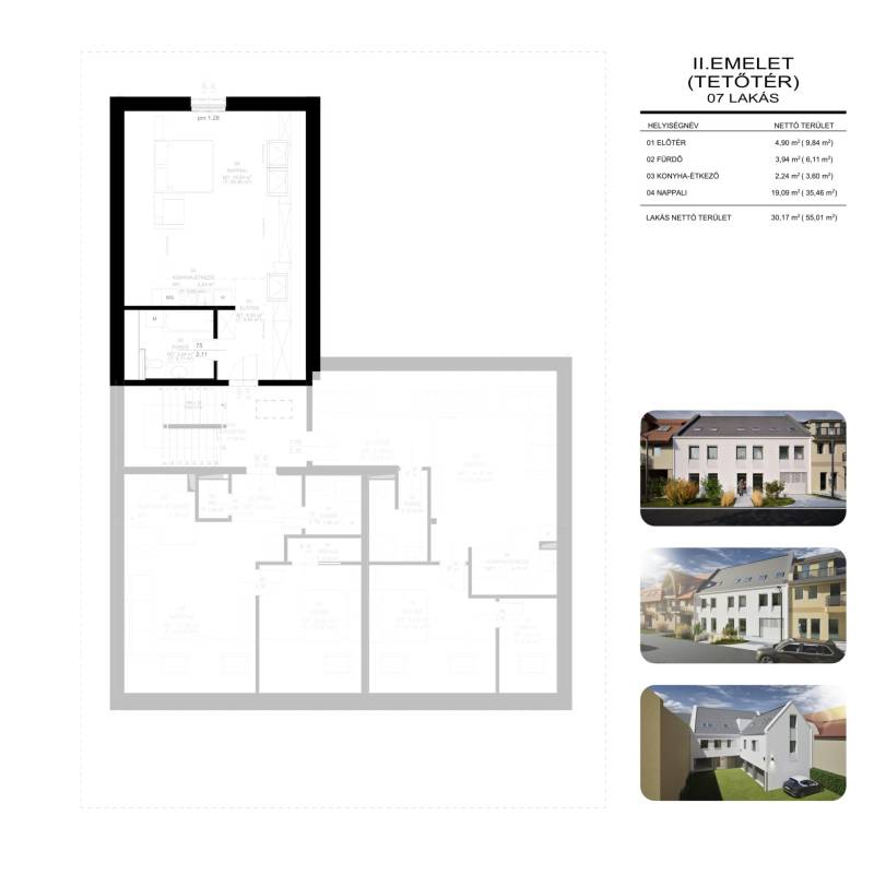 Balmazújvárosban új építésű lakások leköthetőek!1 szobás 2 emeleti lakás foglalható ebben az új építésű társasházban!Válogasson kedvére a különböző méretű és elrendezésű lakások között.Legyen Ön a tulajdonosa egy új építésű, szép lakásnak!7 lakásos társasház egy 417 m2-es telekre épül Balmazújváros Belvárosában.34 m2 - 57 m2-es lakások leköthetőek 20%-os önerővel, november 30-ig még ezen az áron.A társasház főfalai 30 N+F falazó blokkal készülnek, külső felületen 15 cm vastagságú AUSTROTHERM AT-N100 hőszigeteléssel, vakolt felülettel.A külső nyílászárók műanyagok 3 rétegű üvegezésű ablakokkal, redőnyökkel.Az épület fűtése gázkazánnal történik, a melegvíz ellátása gázüzemű kazánnal történik.A lakásokban padlófűtéses hőleadás lesz, mért hőmennyiség mérővel történik az egyéni elszámolás.A vételár tartalmazza az 5%-os ÁFÁ-t!Igény szerint további beállók vásárolhatók, melyek vételára 4 millió Ft, vagy garázs mely 7 milliós árat képvisel.A hirdetésben szereplő 2. emeleti, lakás 30 m2 nettó / bruttó 55 m2-es (tetőtéri)Belső elosztása: előtér, konyha-étkező, nappali, fürdőszoba, kamraKulcsrakész ára : 38.300.000 FtA megbízható kivitelező, számos referenciával.Minden korosztály számára ideális választás!Tervezett műszaki átadás: 2026 év vége (hatósági átadás 2027. március)Az ingatlanra babaváró igénybevehető!A lakás az Otthona Start hitel által is finanszírozható min: 20%-os önerővel!További részletekért keressen bizalommal! Amennyiben a vásárláshoz hitelre van szüksége irodánkban teljes körű szolgáltatással várjuk!