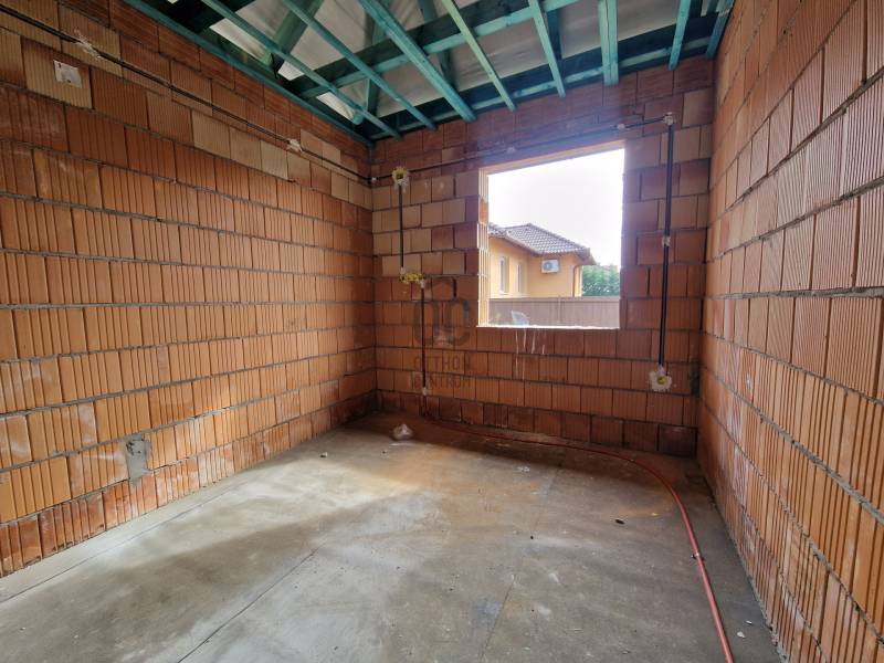 Modern lakókörnyezet, korszerű, energia takarékos ingatlan!Kertvárosias környezetben, található, földszintes elrendezésű, 2026 tavaszán átadásra kerülő ikerház!50nm-es, amerikai konyhás nappali, 2 külön nyíló hálószoba, háztartási helyiség fürdőszoba/wc elrendezésű ingatlan.Saját, lekerített, autóbeállási lehetőség 350nm-es, kert.Műszaki paraméterek:-Porotherm X-therm 30 cm tégla falazat-10cm garfitos szigetelés-3 rétegű hő és hangszigetelt ablak- hőszivattyús fűtés rendszer-inverteres klíma- bio szennyvíz elvezetésKészpénzzel rendelkező vevőt várunk.Rugalmasan megtekinthető.