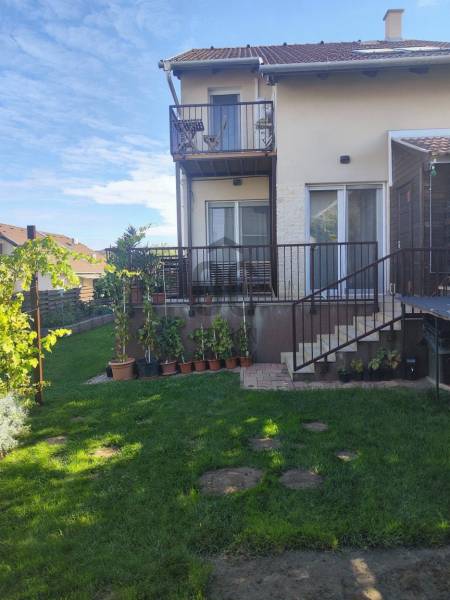 Eladó modern sorház Pécelen – panorámás kilátás, kert, alacsony rezsi!Pécel egyik legkedveltebb részén, a Maglódi úti buszvégállomáshoz közel eladó egy 2019-ben épült, kiváló állapotú nappali + 4 szobás sorház, mely modern technológiát, kényelmet és természetközeli életet kínál egyben.Az ingatlan korszerű (CC) energetikai besorolású, ezért fenntartása rendkívül gazdaságos.A ház világos, tágas terekkel rendelkezik, a panorámás teraszról és az ápolt kertből pedig gyönyörű kilátás nyílik a környékre. Az utca végén játszótér és kiserdő biztosítja a nyugodt, családbarát környezetet.Főbb adatok és jellemzők:106 m² lakóterületNappali + 4 szobaFöldszinten: zuhanyzós fürdő WC-velEmeleten: fürdő + külön WC15 m²-es földszinti és emeleti terasz30 cm tégla + 15 cm hőszigetelés3 rétegű üvegezés, elektromos alumínium redőnyök, szúnyoghálóKondenzációs gázkazán, 200 l-es tároló, hűtő-fűtő klímaKandalló-beépítéshez bélelt kéményRiasztó- és kamerarendszer előkészítésPakolható padlástérKert és külső terület:285 m²-es saját gondozott kert2 autó számára kialakított beállóAutomata öntözőrendszerTermő gyümölcsfák, bokrok, Durisol magaságyás2 fatároló, gyerekjátszóMiért érdemes megnézni?Kiváló elhelyezkedés: minden elérhető pár perc alattModern, energiahatékony épületNyugodt, zöldövezeti környezetIdeális választás családoknak3%-os hitel igénybevehető