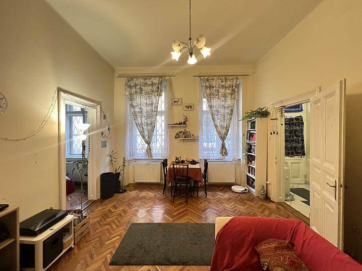 Eladó lakás a VI. kerületben, Rózsa utcábanElső emeleti, 56 m²-es, kényelmes elosztású lakás eladó a belváros szívében. A lakásban két szoba és külön konyha található, így ideális otthon lehet pároknak, kis családnak, de befektetésre is kiváló választás.Az ablakok a csendes belső udvarra néznek, így a lakás nyugodt, zajmentes környezetet biztosít, miközben a központ minden előnye karnyújtásnyira van.A közös költség tartalmazza a vízfogyasztást, ami kedvező fenntartási költségeket eredményez.A lakás jó állapotú, világos és otthonos hangulatot áraszt. Magas belmagassága tágas érzetet kelt, a szobák parkettásak, a konyha ablakos és jól szellőztethető. A társasház rendezett, kulturált lakóközösséggel.A környék infrastruktúrája kiváló: a közelben boltok, éttermek, iskolák, valamint a belváros közlekedési csomópontjai könnyen elérhetők.Jelen hirdetés kizárólag tájékoztató jellegű.