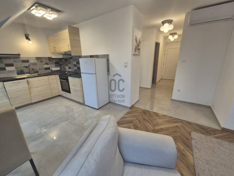 KIADÓ,Pesten, a 6.kerületben egy modern, 2024-ben épült újszerű, liftes, 5.emeleti társasházi lakás.Az ingatlan nappali+két hálószobás, kitűnő elrendezésű, világos, kiváló adottságokkal bír.Hőszivattyús fűtése- hűtése van, padlófűtés és klíma is van, ikeás, gépesített konyha, prémium nyílászárók, gyönyörű burkolatok, szaniterek lettek beépítve.A rezsi költsége rendkívül kedvező, minden fogyasztás szerint fizetendő.Részben bútorozott, kisállat NEM hozható. A dohányzás a lakásban NEM megengedett!Akár 6hónapra is kivehető.A Westend bevásárlóközpont közvetlen közelében található, tehát szuper a lokáció, kiváló a megközelíthetősége.Rugalmasan megtekinthető!November 15-től költözhető!