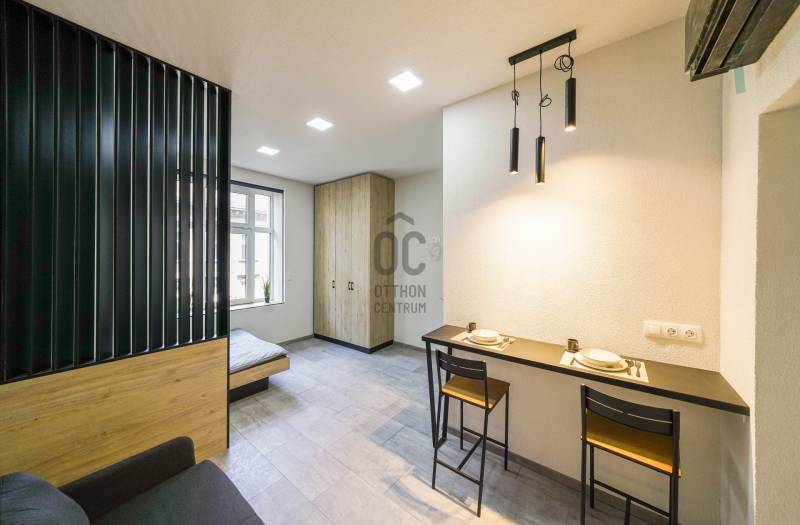 ELADÓ PRÉMIUM FELSZERELTSÉGŰ, EGYEDI INGATLAN BUDAPEST SZÍVÉBEN!Fedezze fel Budapest szívében ezt az egyedi ajánlatot: egy 49 négyzetméteres lakás, nagyobb 30 négyzetméteres részét kínálom eladásra, csupán karnyújtásnyira a körúttól!Ez a KIVÉTELES ingatlan minden igényt kielégít, és a LEGKORSZERŰBB TECHNOLÓGIÁVAL van felszerelve, hogy otthona a lehető legtöbbet nyújtsa.A lakás felszereltsége:A modern életvitel elengedhetetlen része a kellemes klíma, amelyről a PRÉMIUM MITSUBISHI HŰTŐ-FŰTŐ KLÍMÁK gondoskodnak.A lakás kettő klímával rendelkezik. A fürdőszobában található TÖRÖLKÖZŐSZÁRÍTÓS RADIÁTOR fokozza a kényelmet.Az ingatlan kiváló hő- és hangszigetelést biztosít háromrétegű üveggel ellátott nyílászáróinak és ELEKTROMOS REDŐNYEINEK köszönhetően.A teljesen felszerelt KONYHA sem hagy kívánnivalót maga után: Caddy sütő, Gorenje elszívó, indukciós főzőlap és BEÉPÍTETT HŰTŐ is helyet kapott.Az Ariston 80 literes WIFI-S BOJLER gondoskodik a meleg vízről, míg a RAVAK WC és TEKA CSAPTELEPEK garantálják a minőséget és a stílusos megjelenést.TELJESKÖRŰ FELÚJÍTÁS történt, beleértve a vezetékeket és a nyílászárókat is.Az ingatlan külön VILLANYÓRA ALMÉRŐVEL és VÍZÓRÁVAL rendelkezik, különös figyelmet fordítva az energiahatékonyságra.Elhelyezkedését tekintve kiváló, Pest szinte összes nagyobb látványossága illetve több busz, metró, villamos megállók is pár perces sétatávolságon belül elérhetőek.További információért és a megtekintés miatt keressen bizalommal a hét bármely napján!