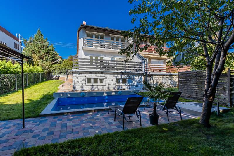 Balatonalmádi csendes, de felkapott környékén kínálunk eladásra egy igazán exkluzív, kiváló állapotú házat, amely ideális választás lehet azon ügyfeleink számára, akik magán- vagy befektetési céllal keresnek ingatlant.Ez a modern, 90 nm alapterületű ingatlan 323 nm-es telken helyezkedik el, és minden kényelmet biztosít, amire csak szüksége lehet. AMIT A HÁZRÓL TUDNI KELL : 2025 - ben teljeskörű gépészeti felújításon esett át ! Víz , villany vezetékek cseréje megtörtént ! A házban prémium minőségű anyagokkal történt a burkolatok felújítása.A konyhában új beépített bútorok mellett első osztályú tűzhely , mosogatógép lett beépítve.A tető új korcolt cserepes lemez borítást kapott.- Szintenként : 45 m2 hasznos alapterületű.- Földszint : nappali , konyha , étkező , fürdőszoba , terasz- Emelet: nappali , 2 db hálószoba , fürdőszoba , erkély- Hűtés - fűtés : klímákkal megoldott - A homlokzaton biztonsági kamera lett elhelyezveAz amerikai konyha és a tágas nappali egy légtérben helyezkedik el, ami ideális a közös családi programokhoz. A 30 nm-es teraszról és az 8 nm-es erkélyről csodálatos tóra néző kilátásban gyönyörködhet, ami a pihenés és a kikapcsolódás tökéletes helyszínévé varázsolja ezt az ingatlant. A ház prémium kivitelezésű, biztonsági ajtóval és riasztórendszerrel ellátott, így Ön és családja biztonságban érezheti magát. A rendezett kert és a medencés ház környezete ideális a szabadidő eltöltésére, legyen szó baráti összejövetelekről vagy családi programokról. Az ingatlan előtt zárt udvarban 2db autó beállására van lehetőség.A környék adottságai is figyelemre méltóak: Balatonalmádi közlekedése kiváló, a város tömegközlekedési lehetőségei könnyen elérhetők, így az ingatlan kiválóan megközelíthető.A csendes utcák és a barátságos szomszédok biztosítják a nyugodt életkörülményeket, míg a közelben található üzletek, éttermek és szabadidős lehetőségek mind hozzájárulnak a kellemes mindennapokhoz. A Balatonpart és a strand kényelmes sétával 10 perc alatt elérhető.Ez a tehermentes ingatlan ideális választás lehet mindazok számára, akik egy modern, világos és kényelmes otthont keresnek Balatonalmádiban. Ha bármilyen kérdése van, kérem, ne habozzon kapcsolatba lépni velem, szívesen állok rendelkezésére a részletek tisztázásában és az ingatlan megtekintésének megszervezésében. Hétvégén is dolgozom , zavarjanak bátran ! Az Ön új nyaralója csak egy telefonhívásnyira van!