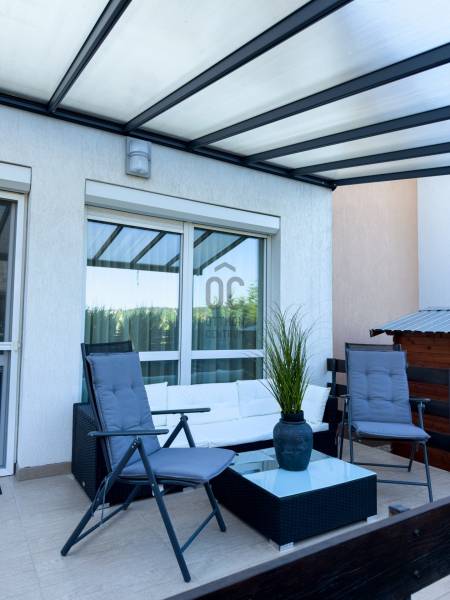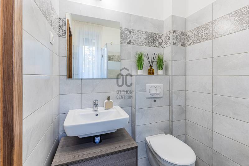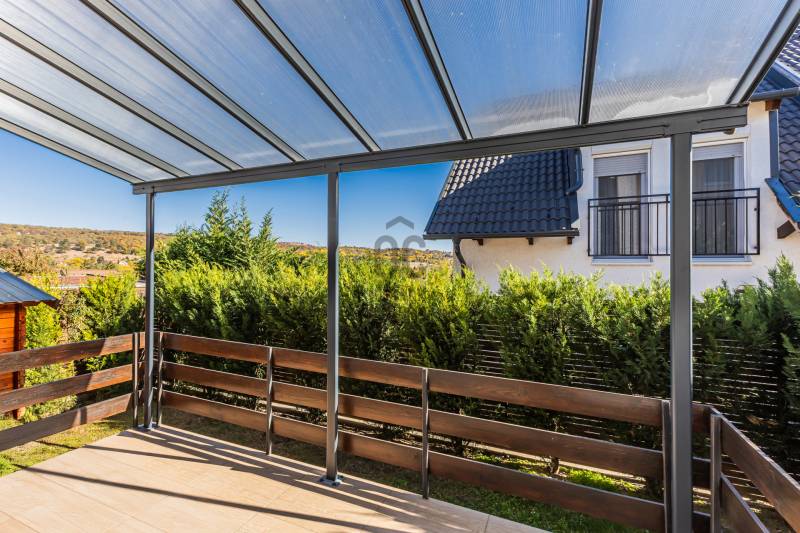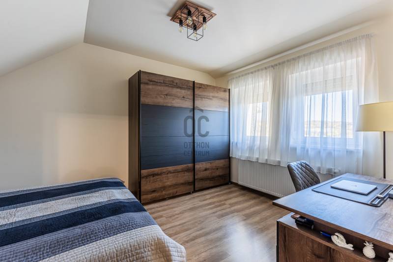 Fót egyik LEGFELKAPOTTABB részén, a KIRÁLYDOMB városrész szívében vált eladóvá ez a kiváló állapotú ház.A lokáció PRESZTÍZS értékű, kimondottan NÍVÓS és jól ellátott terület, kifejezetten jó lakóösszetétellel.Az ingatlan 2019-ben épült PRÉMIUM KIVITELEZÉSSEL és MODERN DESIGN-nal, és jelenleg is KIVÁLÓ állapotú.Ennek a csodás OTTHON-nak az egyik KÜLÖNLEGESSÉGE a BELSŐÉPÍTÉSZ által tervezett német PRÉMIUM NOBILIA KONYHA, amely még GARANCIÁLIS. Természetesen tartozékai a nívós konyhagépek, a beépített hűtő, a gránit mosogató és minőségi mosogatógép, szagelszívó.Az ingatlan másik EXTRÁJA a 12,2 nm-es PANORÁMÁS FEDETT TERASZ, ahonnan gyönyörű kilátás nyílik a környező zöldellő tájra.A nagy üvegtáblás teraszajtókon át szinte egybenyílik a nappali a terasszal.Egész nap napos, világos és nagyon jó rezgésű otthon.Amerikai konyhás nappalival, négy tágas szobával, valamint két fürdőszobával rendelkezik, így kényelmes teret biztosít minden lakója számára. A FÖLDSZINTEN IS van egy 16 nm-es tágas SZOBA, ami tökéletes dolgozószobának vagy szülőknek, nagyszülőknek.A ház fűtése GÁZCIRKÓ rendszerrel, a hűtése inverteres KLÍMÁVAL biztosított. Fenntartási költsége kifejezetten KEDVEZŐ, a TELJES REZSI télen 37 ezer, nyáron pedig MINDÖSSZE 18 ezer forint!A minőségi BEÉPÍTETT BÚTOROK és szekrények maximálisan kihasználják a rendelkezésre álló teret.Igény és megegyezés szerint akár a bútorok is megvásárolhatók.EXTRÁK:Nobilia német prémium konyhaMinőségi beépített szekrényekEnergiatakarékos LED világítás3 rétegű műanyag ablakokSzúnyoghálóRedőnyökRiasztóToshiba klímaKerti tárolóKamraMosókonyhaFedett teraszPanoráma2 autóbeálló2 fürdő, 2 illemhelyEdzett üveg zuhanykabinA környék ellátottsága kiváló, hiszen a közelben megtalálható szinte minden, ami a család kényelmét szolgálja: bank, CBA, rendelő, gyógyszertár, ovi, bölcsi, suli, Fóti-tó, futópálya, játszótér, stb. Vonat és busz 5 perc sétatávolságra van. A csendes, biztonságos környék ideális választás mindazok számára, akik a nyugalmat és a természet közelségét keresik, miközben a város előnyeit is élvezni szeretnék. Az ingatlan jó választás mind a prémium minőség, mind pedig a presztizs lokáció szempontjából.Hívjon bizalommal a hét bármely napján!