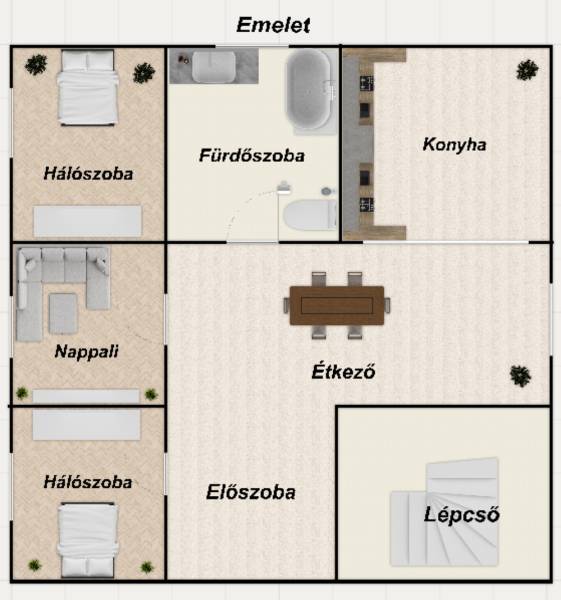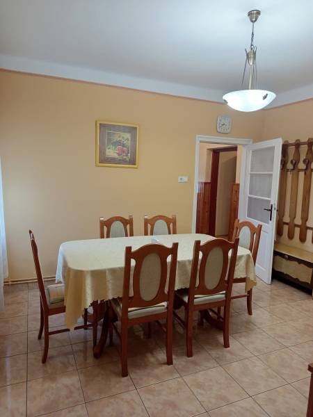 Eladásra kínálunk Tatán egy kiváló adottságokkal rendelkező, kétgenerációs családi házat, amely két külön helyrajzi számon szerepel, így akár befektetésnek, akár összeköltöző családtagok részére is ideális választás lehet.Az ingatlan főbb jellemzői:Telek mérete: 795 m²Lakótér: két különálló lakás, jól kialakított helyiségekSzerkezet:Alsó szint: 1970-ben épült, tégla falazattalFelső szint: 1993-ban került beépítésre, Habisol (könnyített beton) szerkezettelHelyiségek elosztása:Földszint:Előszoba2 hálószobaTágas étkezőKonyhaKülön WCFürdőszoba WC-velEmelet:ElőszobaTágas étkezőKonyha2 szobaNappaliFürdőszobaKülön WC2 m²-es erkélyAz emeleti szint álmennyezettel lett ellátva, a fürdőszobát felújították, valamint az egyik szoba gipszkarton válaszfallal lett kettéosztva, így jött létre két hálószoba és egy nappali.Műszaki adatok, extrák:Fűtés:Gáz cirkó (2006-ban teljes rendszer cserélve, beleértve a radiátorokat is)Alternatív fűtési lehetőség: mindkét szinten cserépkályhaNyílászárók:Földszinten: műanyag nyílászárók redőnnyelEmeleten: Sofa típusú ablakok redőnnyelTető:15 cm-es szigeteléssel ellátvaVillamoshálózat cserélveKert és külső melléképületek:A 795 m²-es udvar gondozott, részben térkövezett, és a következő extrákat kínálja:2 garázsNyári konyhaTárolókMűhelyTöbb gyümölcsfa a kertbenTöbb autó beállási lehetőség:2 autó a ház előtt2 autó a garázsokbanTovábbi parkolás a térkövezett kertbenTársasházi jogviszony, két külön lakásként használhatóAz ingatlan társasházzá van nyilvánítva, külön mérőórákkal rendelkezik, így teljesen független élettér biztosított a két szint között – ideális két generáció számára, vagy akár bérbeadásra is tökéletesen alkalmas.Összegzés:Ez a tatai ingatlan kiváló választás lehet:több generáció együttélésére,befektetésként kiadásra,vagy akár vállalkozás/családi otthon kombinációjaként.A két külön lakrész, a tágas udvar, valamint a sok melléképület és parkolási lehetőség együtt ritka lehetőséget kínál a városban.Amennyiben felkeltette érdeklődését az ingatlan, további információért illetve megtekintéssel kapcsolatban várom hívását.