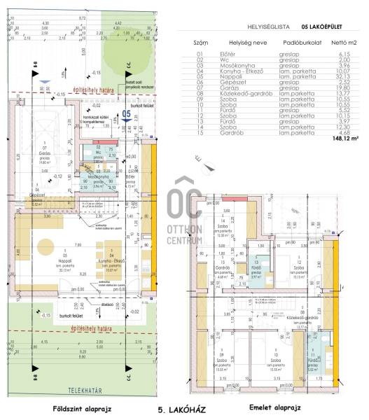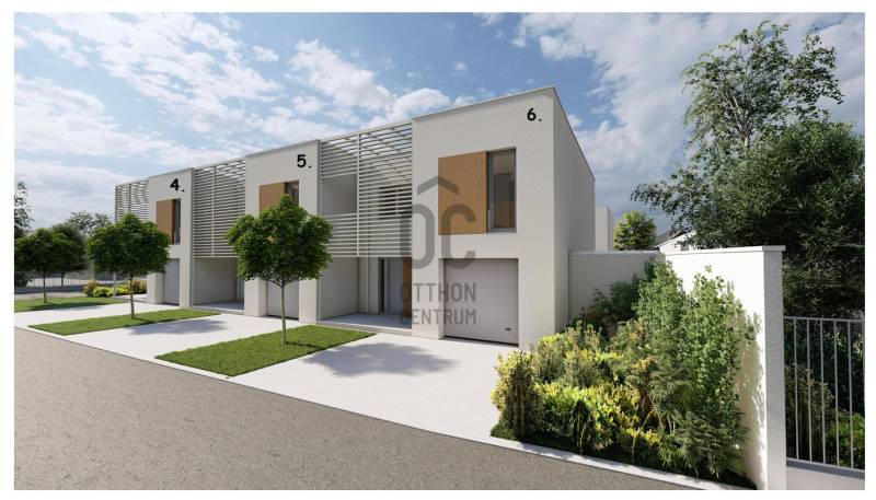 5. lakóház Br. 155 nm, nappali + 4 hálós:Földszint:- amerikaikonyhás nappali étkezővel (42 nm), teraszkapcsolattal- mosókonyha (4 nm)- vendég WC- garázs gépészettel (22 nm)- kertkapcsolat (120 nm)Emelet:- szülői háló gardróbbal és fürdőszobával (21 nm)- 3 hálószoba ( 10, 11, 11 nm)- fürdőszoba (6 nm)- közlekedő gardróbbal (14 nm)Projekt bemutatásaDebrecen kertvárosias részén a Vargakertben már épül a 10 lakóegységű lakópark, melyek ikerház jelleggel és sorház beépítéssel kerülnek átadásra.Az önálló lakóházak alkalmasak a START HITELRE és CSOK + támogatásra is.Most bevezető áron választhat kínálatunkból!A földszint + emelet kialakítású ingatlanok nappali + 3 és nappali + 4 hálószobával rendelkeznek.Mindegyik lakóegység duplakomfortos, garázzsal és tárolóval ellátott, valamint kertkapcsolatos.Műszaki tartalma:- Porotherm 30 N+F falazat- grafitos hőszigetelés- nyílászárók 3 rétegű, argongázzal töltöttek- hidegburkolat 8.500.-, meleg 6.000.-Ft/nm áron választhatóak- fűtés és használati melegvíz hőszivattyúval biztosított (padlófűtés)- hűtés 2 db klímával megoldott.Amennyiben szeretne egy új, energiatakarékos otthont kedvező ár/érték arányban vásárolni, kertvárosi környezetben, ne várjon, hívjon a további részletekért!Banki kollégánk teljeskörű ügyintézéssel, díjtalanul segíti Önt, hogy vásárlás sikeres legyen, bármely banki konstrukcióval!