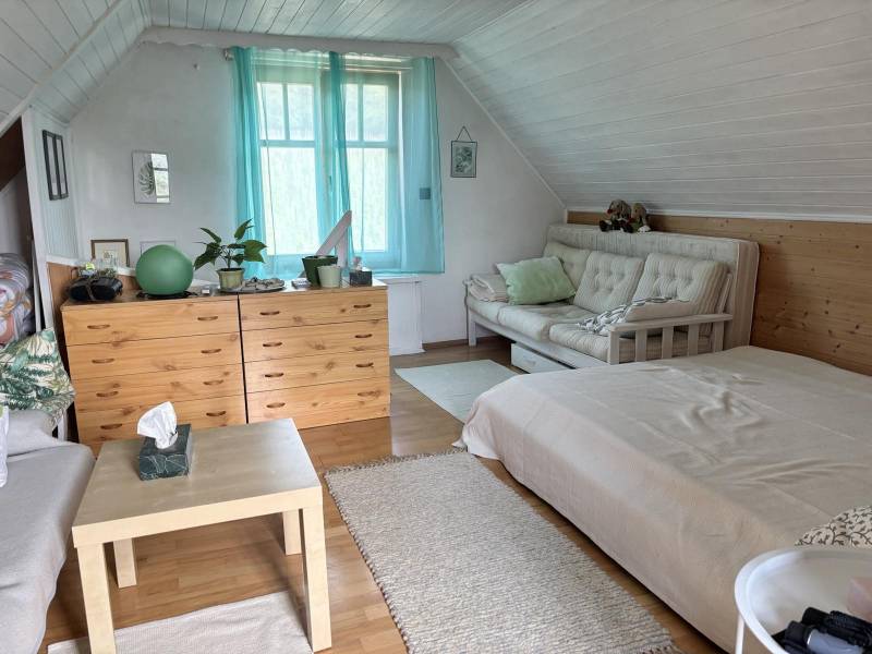 A Tapolcától és a Balatontól is 5-5 kilométerre lévő, mintegy 1000 lakosú Nemesgulács a Tapolcai-medence déli részén, a Gulács nyugati tövében fekszik. A Balaton-felvidéki Nemzeti Parkhoz tartozó tájat ez a 393 méter magas bazaltvulkáni tanúhegy uralja, melyet cukorsüvegnek is neveznek,a hegyről gyönyörű kilátás nyílik a Tapolcai-medencére a Balatonra és a Keszthelyi hegységre.Az erdő ölelésében megbúvó mesebeli házikó várja új tulajdonosát.A háromszintes épület 80 nm lakótérrel és 46 nm teraszkapcsolattal rendelkezik.Földszint :- hálószoba, konyha-étkező, fürdőszoba ,terasz, elosztással.Emelet :- hálószoba, konyha-étkező, fürdőszoba, terasz.Tetőtér:-belső lépcsős kialakítással egy légterű lakrész,gardrób,fedett terasz mesés Balatoni és tájpanorámával.A ház ,két önálló lakrészre tagolódik, külön bejárattal megközelíthető.Az otthon melegét fatüzelésű kandalló biztosítja.Villany bevezetve, a vezetékes víz bevezetése folyamatban van, jelenleg a ház vízellátása víztárolóból megoldott.Az épület folyamatosan karbantartott, kiváló állapotban kerül értékesítésre.A kertben szerszám és fatároló is található.Kültéri étkező, épített grill, nagyméretű, panoráma terasz , áll a lakók rendelkezésére.A gondozott, dísznövényekkel , termő gyümölcsfákkal betelepített kert 1541 nm területtel rendelkezik.Az épület minden szintjéről lélegzetelállító panorámát élvezhetünk.Aszfaltos úton át, minden évszakban jól megközelíthető, az autók parkolása a ház mellett megoldott.A külterületi házikó kifüggesztési eljárást nem igényel, rövid határidővel birtokba vehető.A tulajdonos, a nyaralót teljes berendezéssel együtt kívánja értékesíteni, ezt a vétel ár tartalmazza.A mesés panoráma ,a varázslatos környezet, igazi szabadság életérzést nyújt ,egyre többen emlegetik csak magyar Provence-nak a Balaton Felvidék területét.Ajánlom ezt a kisbirtokot, hétvégi házként mindazoknak, akik csendre, nyugalomra vágynak, akik a nagyváros zaját hátrahagynák hétvégente és a szabadságuk idejére a vidéki élet békéjét választva pihennének, kikapcsolódnának.Ha felkeltette az érdeklődését,hívjon bizalommal a hét bármely napján!