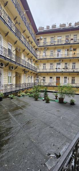 Nyugati téren, gyönyörű, 19. században épült házban eladó egy 1. emeleti 156 nm-es, tágas lakás.A polgári lakás jellemzői:- Tágas terek.- Nagy belmagasság.- Két lakássá alakított, de egybenyitható. ( Két bejárati ajtó, 4 szoba, 1 hall, 2 folyosó, 2 fürdő, 2 konyha)- Városi panoráma.- Irodának is kitűnő.- 4 méteres belmagasság.Ház jellemzői: - A 19. században épült ház kiváló állapotban van, polgári jellegének megfelelően szépen felújított.- Kilátás: 6 ablak a Nyugati tér panorámájára.- Tömegközlekedésileg is kitűnő az ingatlan elhelyezkedése. Nyugati pályaudvar, M3-as metró, villamosok (4-6) 1-2 perc sétára.- Bevásárlás: Westend Mall (2 perc séta)Amennyiben fontos Önnek a központi, mégis csendes elhelyezkedés, a jó közlekedés, ha szeretné, hogy vállalkozása felújított társasházban működjön, akkor erről nem maradjon le!Ez az ingatlan a \"Hűség csomag\" megbízási portfólióhoz tartozik. Részletek az Otthon Centrum weboldalán.
