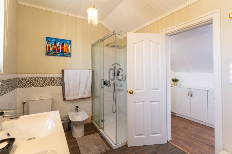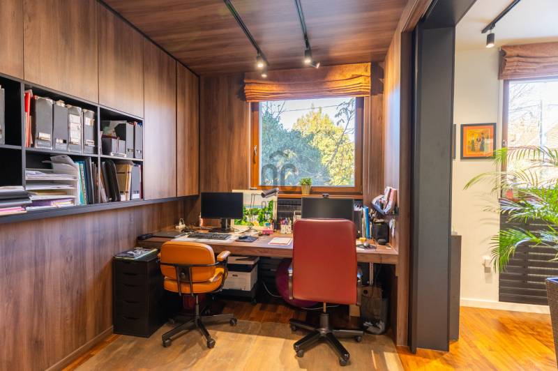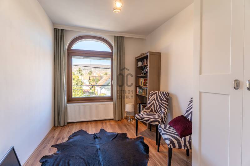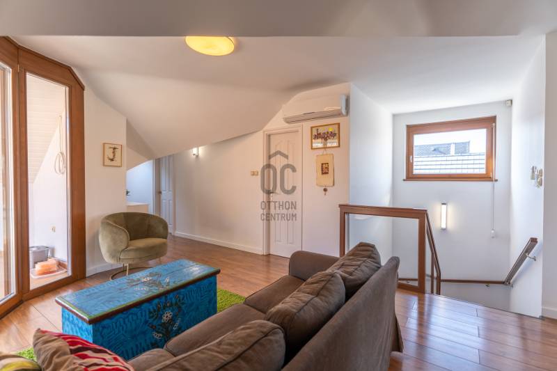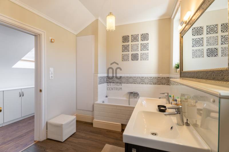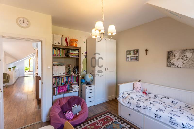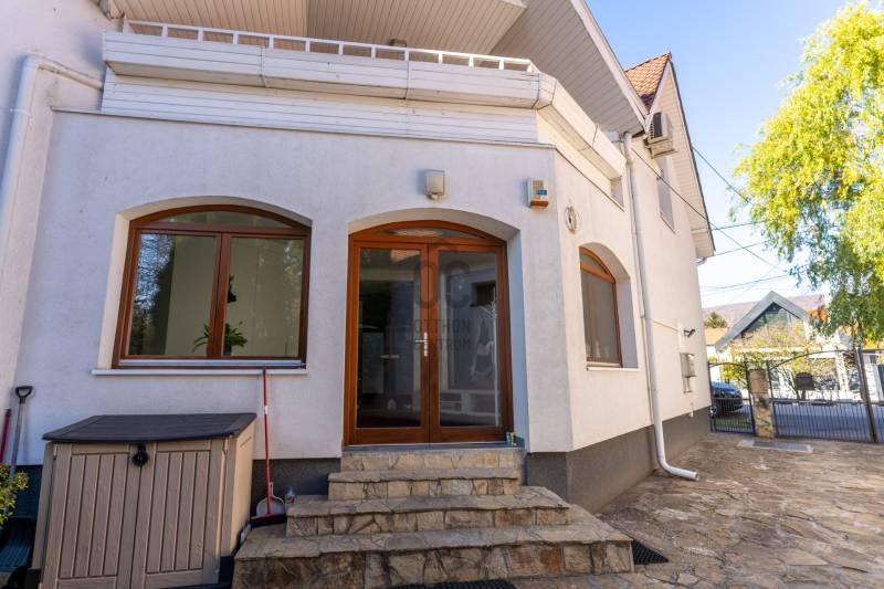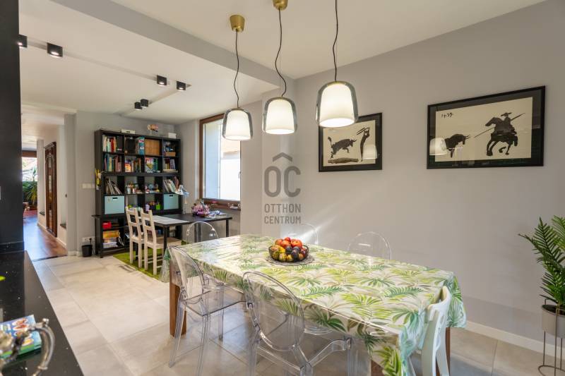 Eladó Pest vármegyében, Budaörs központi, mégis csendes és zöld részén egy nappali + 5 szobás, modernizált, teljes körűen felújított, élhető, praktikus terekkel és intim kerttel rendelkező családi ház. Szívem szerint többet nem is írnék, mert ez tényleg egy olyan ingatlan, amit látni, érezni, megtapasztalni kell, minden másra ott az adatlap és a MasterCard... Ízlésről nem illik vitatkozni, de garantálom, hogy aki megnézi beleszeret.A tulajdonos hölgy belsőépítész, amit a kifinomultság, a sok-sok apró, de jó ötlet híven tükröz.Hogy eleget tegyek a szakmai minimumnak egy-két gondolat, tény és adottság az alábbiakban:- Az elmúlt 4 évben szinte minden felújításra került vagy cserélve lett: a hőszivattyús fűtés és a gáz cirkó kellő rugalmasságot ad, amihez jár a H-tarifa, a napelemhez és az elektromos autótöltéshez pedig kiépítették a kiállásokat, a nyílászárók 3 rétegű üvegezéssel, zsaluziával, redőnnyel és szúnyoghálóval szereltek.- A tető és a homlokzati határoló falak is szigeteltek.- A felújított villamoshálózat mindent elbír, 3x32A és 3x16A bővítést kapott, továbbá új a vízhálózat is.- A több praktikus tárolóhelyiség és a rengeteg beépített minőségi bútor miatt (amik a vételár részét képezik) már alig kell további bútorozásra költeni.- Nemcsak a ház, hanem a nagyobbik kerti tároló is kapott riasztót, így a biciklik és motorok is védve vannak.- Az intim kert automata öntözőberendezést kapott.- A konyhához és étkezőhöz kapcsolódó méretes fedett terasz tavasztól őszig egy plusz családi életteret jelent.Ami az infrastruktúrát illeti, mivel Budaörs központi részén vagyunk, akár gyalogosan, akár tömegközlekedve rengeteg vásárlási lehetőség, szolgáltatás, oktatási intézmény vagy sportolási lehetőség könnyedén elérhető, autóval pedig verhetetlen, hiszen 3-4 percen belül ott az M0, az M1 és az M7, az összes budaörsi megastore, Budapest egy macskaugrás és a Balaton is csak 30-40 perc.Az ingatlan egy házaspár tulajdona, rövid határidővel birtokba vehető.További információért, időpontért keressen akár hétvégén is!Egyedi igényekre szabott lakáshitelekkel állunk rendelkezésére. Bankfüggetlen hitelcentrumunk az országban elérhető összes bank és hitelintézet ajánlatát versenyezteti az Ön számára díjmentesen. Munkatársaink nagy szakmai tapasztalattal várják Önt az előre egyeztetett időpontban akár a normál munkaidő után is.