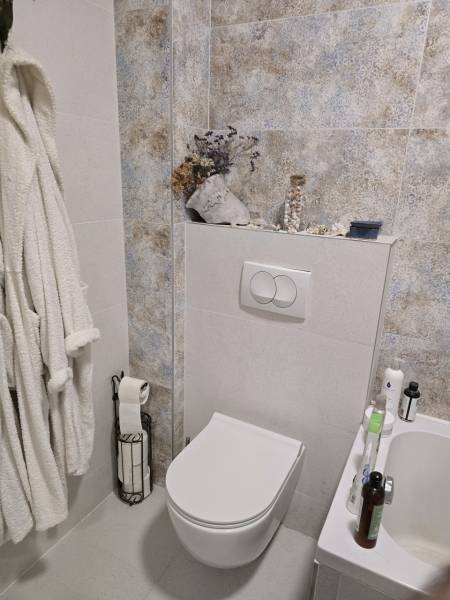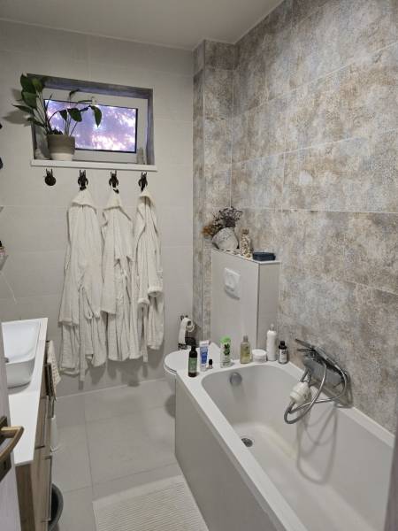 Egyedi kialakítású téglalakás napelemmel és szauna házzal Budapesttől 25 percre Gödöllőn.Csendes, családbarát lakóparkban eladó egy 3 szobás, alacsony rezsiköltségű újszerű állapotú, 94,50 m2-es, földszinti, hőszigetelt téglalakás, 100 m2 kerttel, napelemes rendszerrel és finn elektromos szaunával. A lakópark békés, szép erdő melletti környezetben található.Helyiséglista:előtér - mosdó-wc - konyha-étkező-nappali-fedett terasz - előtér - fürdő-wc - szoba - szoba - kert- szaunaházA lakás kiváló elosztással rendelkezik, meleg, déli tájolású nagy ablakokkal, fedett terasszal. Az öntözőrendszerrel kialakított kertben fatüzelésű erdélyi fürdődézsával és egy prémium kivitelezésű 6 személyes finn szaunával, a nyári madárcsicsergés mellett még a téli hétköznap esték is meghitt nyugalomban és teljes feltölődésben telnek.A lakás mind esztétikailag, mind műszakilag kiváló állapotban van:A szobákban, a konyhában és a nappaliban eredeti svéd tölgyfa padló, az előtérben és a fürdőben gyönyörű kerámia burkolatú a padozat. Az amerikai konyhás nappaliban fa konyhabútorok egyedi tervezésűek, tömör tölgyfa munkalappal, beépített elektromos elektromos sütővel, gáz főzőlappal, elektromos páraelszívóval, és mosogatógéppel valamint elektromos szelektív kukával.A külső műanyag nyílászárók 3 rétegű hőszigetelt üvegezésűek, míg a beltéri ajtók fából készültek, üveg berakással. A fűtés padló és falfűtés, a melegvizet is kondenzációs kazán készíti.A tetőn 8,5 kWp teljesítményű napelem rendszer biztosítja a lakás teljes elektromos fogyasztását, sőt az 5000 kWh többlettermelés akár még 2 elektromos autó töltő éves díjmentes fogyasztását is fedezni tudja, vagy egy elektromos bojler beépítésével 0 rezsiköltségű ingatlan alakítható ki, hiszen még 7 évig a szaldó elszámolás biztosított. Saját autóbeálló is tartozék az ingatlanhoz.A 100 m2-es kertben kialakított kis magaságyásokban hobbikertészkedéssel lehet kikapcsolni a munkanapok után. A kert ékköve a mészkőből faragott kerti kút és a 6 méter magas fekete bambusz sor mellett, egy 6 személyes, egyedi tervezésű elektromos finn, csomómentes, rezgőnyár szauna hozzá tartozó hidegvizes merülő dézsával. A hűvösebb hónapok komfort élményét egy erdélyi fatüzelésű dézsa is fokozza.A lakás parkos, erdős, nyugodt, zöldövezetben található, játszótérrel és biztonságos környezettel. Ugyanakkor minden városi szolgáltatás csak pár perc távolságra található.Iskola, óvoda, bölcsőde, uszoda, orvosi rendelő és gyógyszertár, vonat és buszállomás valamint autópálya autóval elérhető 5-10 percen belül. A tulajdonviszonyok rendezettek, rövid időn belül birtokba vehető. Helyi kontakt: 30-921-9241