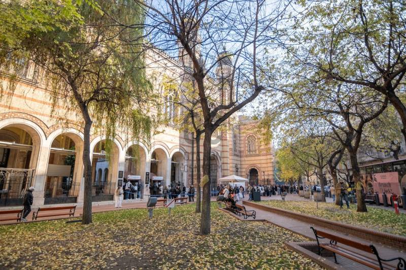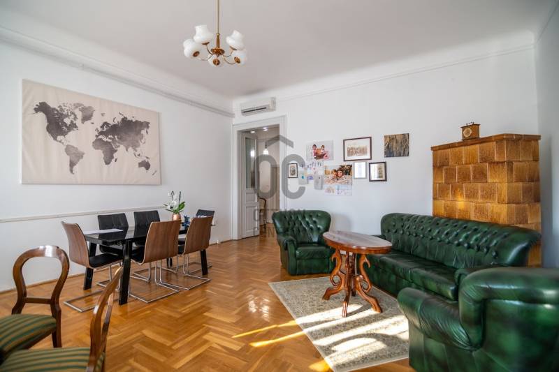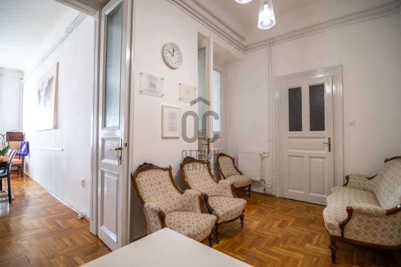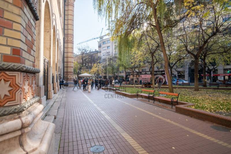 A nagyon szépen felújított 4. emeletes lakóház Hubert József tervei alapján épült 1898-ban.Az épületnek nemcsak a külső homlokzata impozáns, de belső udvari homlokzata is nagyon látványos. Az igényesen rendbe hozott épület a világörökség részét képezi, és közvetlen a világhírű Zsinagóga szomszédságában található.A lakás az épület 4.emeletén helyezkedik el. A liftből kilépve pár lépés után érjük el a lakás bejáratát. Addig is gyönyörködhetünk a belső udvar szépségében.A lakás 111nm-es ,hal+ 2 külön álló parkettás szobák, tágas előtér ahol jellenleg váróterem lett kialakítva, mert ügyvédi irodaként funkcionál. A szobák világossak és napfényesek, déli tájolásuknak köszönhetően.A szobákból egyedülálló kilátás nyílik a Zsinagógára.A ház folyamatos felújításokon esett át:2006-ban műszaki: villany- víz vezetékek és óra cserék2011-ben teljes tetőcsere, homlokzat, folyosó, lift, bejárati ajtóA ház rendjéről és tisztaságáról helyben lakó házfelügyelő gondoskodik.Lakás 2021- ben műszakilag teljes felújítást kapottFelújítások:- villany- víz- gáz vezetékek- mind a 3 óra ki lett cserélve- hűtő- fűtő klíma be lett szerelveLakás jellemzői:- téglaépítésű- belmagassága: 3.65m- 4. emelet/ lift van/- 111 nm- gázcirkó fűtés- + cserépkályha- hűtő- fűtő klíma- hal+ 2szoba- cserélt műanyag nyílászárok- 36-39nm amiből a nagyobb szobából+ 1 szoba leválasztható, mert dupla ablakos, és megosztható- konyha- előszoba- fürdőszoba+ káddal+ mosdó+ Wc- wc+ mosdó- kamra- korszerűsített lift- 10nm-es saját tároló- távirányítós kapu- jogfolytonosággal 1 parkoló tovább bérelhető havi 5000Ft-ért- közösköltség: 30.000Ft amiben a ház felújítási alap is benne vanA ház a belváros szívében, közvetlen a nemzetközi hírű Zsinagóga mellett található. Budapest városképének meghatározó épülete. Jellemző a környéken található épületekre, hogy neves építészek tervei alapján épültek és nagypolgári lakások sora található bennük.A környéken üzletek, éttermek, szórakozó helyek, bevásárlási lehetőséget biztosító üzletek sora található. De színház, mozi, bank és egyéb intézmények is bőségesen találhatók.Az utcában közlekedik a 74-es troli. De pár percre a háztól felszállhatunk a 2-es, 3-as metróra, a 47-es, 49-es villamosokra és a 7-es busz is a közelben jár. Egyszóval innen bárhová könnyen eljutunk tömegközlekedési eszközökkel.