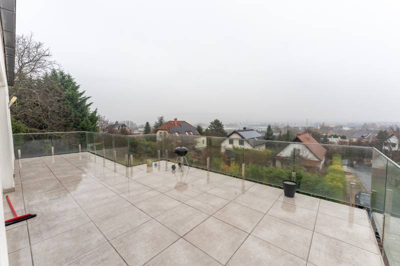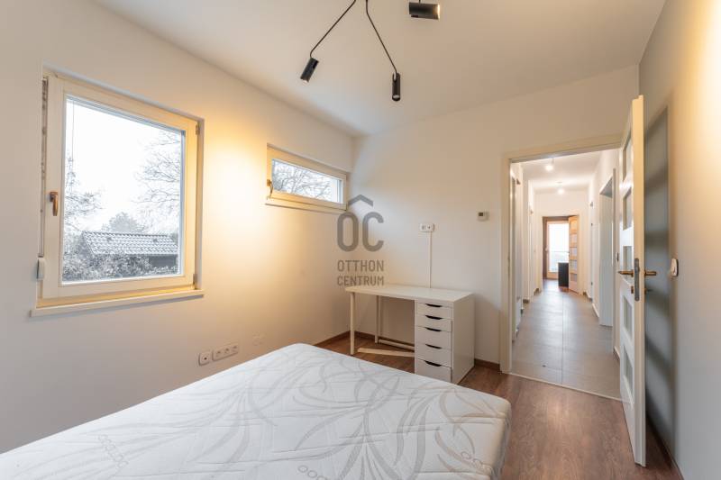 Kinek ajánlomEzt az ingatlant azoknak ajánlom, akik az otthont nem pusztán élettérnek, hanem harmóniát adó helynek tekintik.Akik szeretik, ha reggel a napfény tölti meg a szobákat, ha este a városi fényekkel a horizonton pihennek meg, és fontos számukra a nyugalom, a panoráma és a minőség.Ideális választás családoknak, pároknak, vagy akár elfoglalt szakembereknek, akik egy rendezett, zöldövezeti környezetben szeretnének élni — kompromisszumok nélkül.ElhelyezkedésAz ingatlan Budaörs egyik legkedveltebb, dombos részén található, zöldövezeti, mégis kiválóan megközelíthető környezetben.A városközpont, valamint a legfontosabb bevásárlási lehetőségek – IKEA, Auchan, Tesco, Decathlon, Rossmann, gyógyszertárak – mind néhány perces autóútra elérhetők.Több iskola, óvoda és sportlétesítmény is a közelben található, a tömegközlekedés pedig kényelmesen használható: helyi buszjáratok biztosítanak kapcsolatot a budaörsi központ és Budapest irányába.Az M1–M7 autópályák csomópontja mindössze pár percre található.A környék hangulataA budaörsi dombvidék egyik legcsendesebb és legápoltabb része.A környék atmoszférája nyugalmat és természetközelséget sugároz, miközben modern, igényes családi házak és új építésű társasházak veszik körül.A környék ideális választás azoknak, akik szeretik a reggeli sétákat, a friss levegőt, a csendes esték békéjét, és akik számára fontos, hogy a panoráma valóban elvehetetlen maradjon.Az ingatlanrólA lakás egy kétlakásos társasház felső szintjén helyezkedik el – így teljes intimitást és privát életteret biztosít.A ház elhelyezkedéséből adódóan 180 fokos, körpanorámás kilátás tárul elénk, amely a nappaliból, a teraszról és a kertből is élvezhető.A lakás különlegessége a 33 m²-es, üvegkorlattal ellátott panorámaterasz, ahol minden napszakban más arcát mutatja a kilátás.A tágas, egybenyitott nappali–étkező–konyha térben hatalmas üvegfelületek engedik be a fényt, így a lakás egész nap napfényben úszik.A három hálószoba közül a legnagyobb közvetlen kertkapcsolattal rendelkezik.A házhoz privát úton lehet feljutni, ami biztonságot és nyugalmat ad, a környezet pedig rendezett és igényes.Műszaki felszereltségÉpítés éve: 2018Fa nyílászárók, prémium hőszigetelésselHőszivattyús hűtés–fűtés rendszer, alacsony fenntartási költségekkelBeépített konyhabútor és beépített gardróbszekrényekFrissen tisztított, üres állapot, azonnal költözhetőModern, igényes kivitelezés, időtálló anyaghasználatParkolás és megközelítésA lakáshoz tartozik egy 30 m²-es, zárható, privát garázs, amely kizárólag az ingatlan tulajdonosának használatában van.Ezen felül a telken belül további 2–3 felszíni beállóhely is rendelkezésre áll.A ház privát úton közelíthető meg, ami exkluzivitást és biztonságot nyújt a lakók számára.Ez az otthon egyszerre sugároz letisztultságot, harmóniát és eleganciát – egy hely, ahol minden részlet a kényelmet és a nyugalmat szolgálja.Ha felkeltette az érdeklődését, keressen bizalommal, örömmel mutatom be személyesen is ezt a különleges ingatlant.
