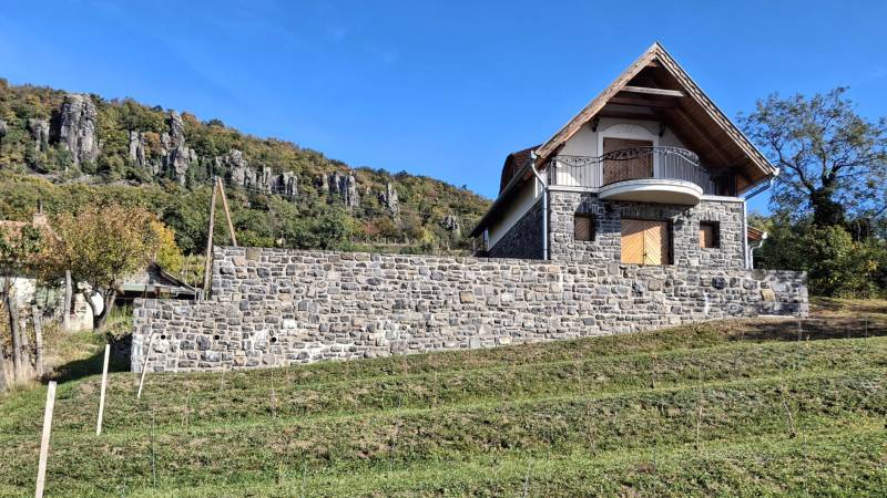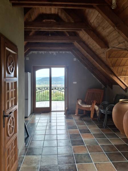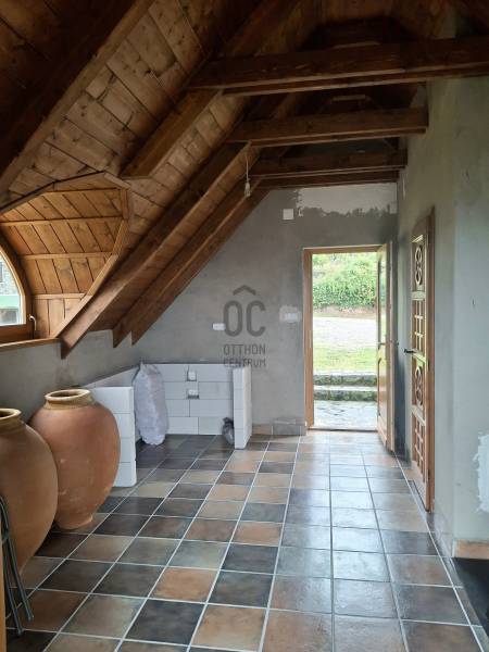 Badacsonytördemicen a Római útról megközelíthető nyaralót ajánlok figyelmébe!A hegy közepén fekvő ingatlanból gyönyörű panoráma tárul elénk a Balatonra, a hegy bazaltorgonáira és Szigligetre.Kiépített út vezet a házhoz, ahol több autó számára kialakított parkoló biztosított.KIEMELT MEGBÍZÁS, CSAK AZ OTTHON CENTRUM KÍNÁLATÁBAN!A lépcsőzetes kialakítású telek nem túl nagy mérete ( 860 m2 ) optimális, gondozása sok időt nem igényel, szőlővel betelepített.A telek minden pontjáról megcsillan a Balaton víztükre, de a ház háta mögött a hegy is pazar látképet ad.A környező pár szomszéd után pihentető sétára indulhatunk az erdőbe vagy a hegytetőre.A ház falazata tégla, bazaltkő támfalakkal kiegészülve.A tető hódfarkú héjazatot kapott, szigetelt.A pinceszinten az előtér, kamra és bortároló kialakítás külön lakrésszé változtatható.Az emeleten a nagy légterű nappali- konyha és fürdőszoba befejezésre vár.A nyílászárók fenyőből készültek, dió lazúrral.A villany bekötésre került, a szennyvízhez az emésztő biztosított.Víz jelenleg nincsen, ciszternával vagy kútfúrással megoldható.Gazdasági épület, kifüggesztés köteles.A Badacsony a Tapolcai- medence legmagasabb, ikonikus hegye.A szőlőtermesztésről, borozóiról híres, kedvelt üdülőhely.A közelben több strand és étterem várja a vendégeket.Ha kérdése merült fel vagy szeretne időpontot egyeztetni, várom megtisztelő hívását!