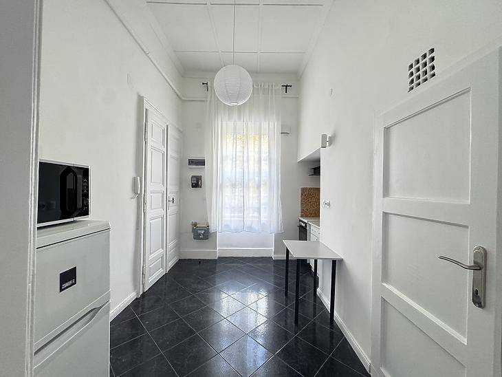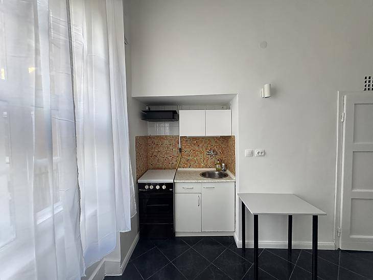 Kiadó galériás lakás Budapesten - Dob utcában !Kiadó 1. emeleti, 41 m²-es, 1 szobás, galériás lakás a Dob utca 68. szám alatt, egy csendes, kevés lakóval rendelkező társasház első emeletén. A lakás bútorozott és gépesített és azonnal költözhető. A nappali tágas, galériás kialakítású, a lépcső alatt gardrób található, amely ideális tárolásra. A kis konyha hűtőszekrénnyel, mikróval és tűzhellyel rendelkezik. A fürdőszoba kádas, törülközőszárító és melegítő gondoskodik a kellemes hőmérsékletről. A lakás előszobája bútorozható, ha a leendőbeli bérlő igényt tart rá, továbbá ruhaszekrény is opcionálisan rendelkezésre áll, ha a bérlőnek szüksége van rá. A fűtés konvektoros, de légkondi is van szükség szerint.A lakás közös költsége 26.951 Ft/hó, a rezsi egyéni fogyasztás alapján fizetendő.A lakás a belváros közelében helyezkedik el, így jó közlekedés jellemzi. A környék nyugodt, csendes, de a tömegközlekedési lehetőségek – például busz- és villamosmegállók – könnyen elérhetők. A közelben bevásárlási lehetőségek, kis boltok, kávézók és éttermek találhatók, így minden mindennapi igény gyorsan kielégíthető. A környék hangulatos, biztonságos, ideális egyedülállóknak vagy pároknak, akik egy nyugodt, mégis jól elérhető helyen szeretnének lakni.