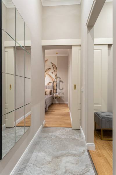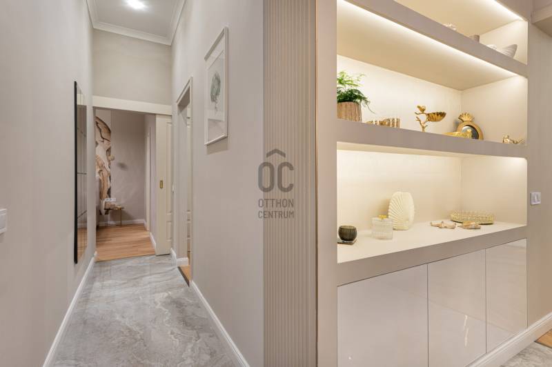 V. kerület Szemere utcában, 86 m2-es nappali + 2 hálószobás +gardrób szobás, duplakomfortos, 3. emeleti, utcai nézetű, luxuslakás eladó. Az ingatlan prémium minőségű felújításon esett át, melynek során a legkiválóbb minőségű anyagokat használták fel, a lakás minden részletében az eleganciát tükrözi.Az ingatlan amerikai konyhás nappalival rendelkezik, mindkét hálószobához külön fürdőszoba tartozik: a fő hálószobához egy elegáns káddal, WC-vel és bidével felszerelt fürdőszoba kapcsolódik, míg a második szobához egy zuhanyzós fürdő. Az ingatlan prémium minőségű bútorokkal és gépekkel együtt eladó, így az új tulajdonos azonnal beköltözhet egy teljesen felszerelt, exkluzív otthonba.A teljes körű felújítás során megtörtént a víz- és villanyvezetékek, valamint a fűtéscsövek, radiátorok cseréje. Designer csillárok, beépített szekrények, minőségi szaniterek és prémium burkolatok kerültek beszerelésre. A 4,3 méteres belmagasság igazán légies, tágas hangulatot ad a lakásnak, a chevron mintás tölgyfa parketta eleganciát és egyediséget. A konyha teljesen gépesített, AEG márkájú készülékekkel felszerelt: mosogatógép, hűtő fagyasztóval, sütő, mikró, főzőlap, páraelszívó és mosógép is rendelkezésre áll. A lakás légkondicionált.A társasház kivül, belül kiváló állapotú, az emeletre jutást 2 modern lift segíti. A lépcsőház függőfolyosós, a lakás a függőfolyosó végén található.A közvetlen közelben több busz- és villamosvonal elérhető, amelyek gyors és kényelmes kapcsolatot biztosítanak a város többi részével. Ez a lakás nem csak otthonként, hanem befektetésként is tökéletes választás azok számára, akik a belvárosi luxust és kényelmet keresik. Az ingatlan minden részlete a legmagasabb színvonalat képviseli, így garantáltan megfelel a legigényesebb vásárlók elvárásainak is.Jöjjön és helyezze magát kényelembe új otthonában!Várom megtisztelő hívását a hét minden napján!