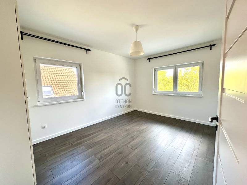 Dunakeszi egyik legkedveltebb részén, a Tóvárosban eladó egy 2020-ban épült, 116 m²-es, modern és letisztult stílusban megálmodott kétszintes lakás, amely ideális választás azok számára, akik nyugodt, mégis városi életérzést keresnek.Az ingatlan egy mindössze négy lakásos társasházban található. A hátsó szomszéddal közös, igényesen kialakított előtér biztosít kényelmes bejárást, valamint tartozik hozzá egy 6 m²-es, zárható tároló, amely bőséges helyet nyújt a szezonális holmiknak vagy sportfelszereléseknek.A földszinten tágas, világos amerikai konyhás nappali, fürdőszoba és praktikus tárolóhelyiség kapott helyet.A felső szint három külön nyíló hálószobát és egy második fürdőszobát kínál – tökéletes elrendezés családok számára, ahol fontos a kényelem és a jól átgondolt térszervezés.A nappaliból egy 6 m²-es, utcafronti teraszra léphetünk ki, amely hangulatos helyszín lehet a reggeli kávéhoz vagy esti pihenéshez. A 66 m²-es előkert igényesen kialakított, rendezett zöldfelület, amely gondozott környezetet és kellemes megjelenést biztosít az otthonnak.A lakáshoz tartozik egy 33 m²-es, kétállásos garázs, amely a vételár részét képezi, és további parkolási lehetőség is biztosított az épület előtt.Főbb jellemzők:-Porotherm tégla falazat + 10 cm hőszigetelés-Padlófűtés, gázkazán és Fujitsu hűtő-fűtő klíma -IKEA Bodbyn konyha teljes AEG gépparkkal (mosogatógép, hűtő, mikró, sütő, indukciós főzőlap)-Redőnyök, szúnyoghálók, riasztó-előkészítés-Egyedi mérőórák (3×20A) – napelem telepíthető bővítés nélkül-Minőségi burkolatok, hangszigetelt belső ajtók-Alacsony rezsi, friss festés, azonnal költözhető állapotKörnyék:A Tóváros rendezett, zöldövezeti környezet, ahol minden megtalálható pár percen belül: tó, játszótér, SPAR, buszmegálló, óvoda és iskola. A vasútállomás 15 perc sétára, ahonnan 20 perc alatt elérhető a Nyugati pályaudvar.Ez az ingatlan tökéletes választás azoknak, akik minőségi anyagokból épült, modern, alacsony fenntartású otthont keresnek Dunakeszi egyik legnépszerűbb és legnyugodtabb részén.Itt valóban csak beköltözni kell.Ha felkeltette érdeklődését keressen bizalommal a hét bármely napján!