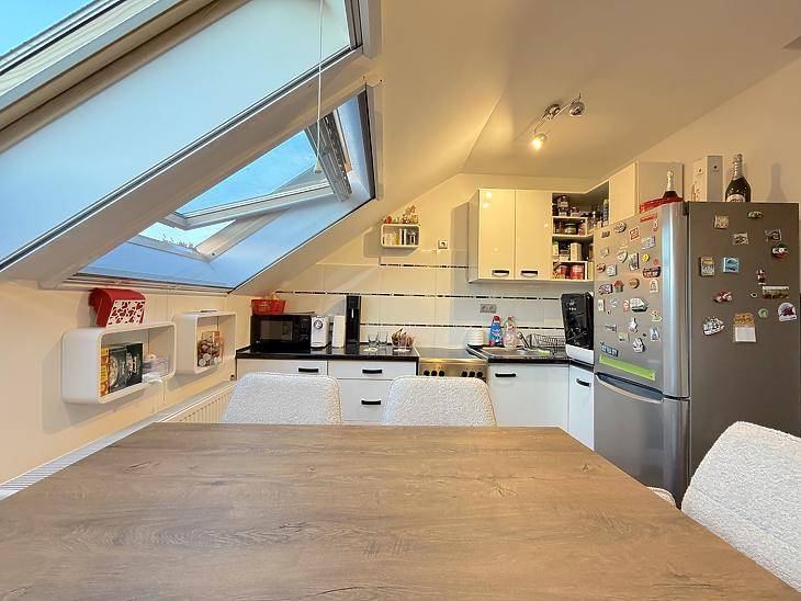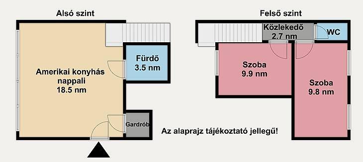Eladó Zugló, Alsórákos csendes részén, a Gervay utcában egy belső kétszintes, klimatizált lakás egy mindössze 6 lakásos, rendezett társasházban.Az ingatlan nettó 47 nm, bruttó 58 nm alapterületű, praktikus elosztású: az alsó szinten amerikai konyhás nappali, a felső szinten pedig két külön nyíló hálószoba található. A házközponti fűtés egyedi méréssel működik, a klíma pedig a nyári hónapokban biztosítja a kellemes hőmérsékletet.Az épület 1987-ben épült, eredetileg panzióként funkcionált. Később, 2014-ben alakították át lakóházzá, ekkor építették be a III. emeletet és a tetőteret is, ahol a mi lakásunkat is kialakították. A csupán 6 lakásos társasház kifejezetten összetartó és családias hangulatú lakóközösséggel rendelkezik.Ez a lakás ideális választás lehet azoknak, akik nyugodt környezetben, modern és praktikus otthont keresnek, de befektetésre is remek lehetőség.A hirdetés tájékoztató jellegű.