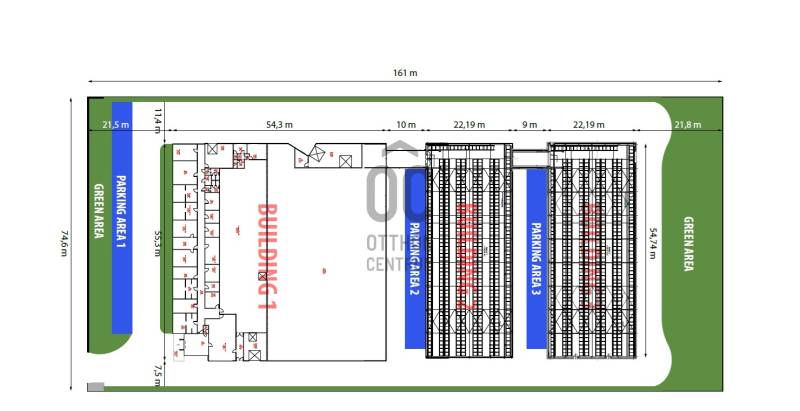 Debrecenben, a Nyugati Ipari Park központi részén eladó egy 6.000 m²-es irodaépület, üzemcsarnok és raktár.Az ingatlan igény szerint megosztható, akár két vagy három különálló egységre is, így 800 m²-től 6.000 m²-ig terület áll rendelkezésre. A telephely kereskedelmi, szolgáltató és ipari tevékenységek végzésére egyaránt alkalmas.A raktárépületek az irodaház mögött helyezkednek el, külön bejáratokkal. Az irodaház részben 11 különálló irodahelyiség található, átlagosan 20 m² alapterülettel, valamint 5 szociális helyiség is kialakításra került.Az épület belmagassága változó: az irodarészben 3,0–4,5 m, míg a raktárrészben 7,4 m.Az ingatlan teljes közművel ellátott (víz, gáz, ipari áram, szennyvíz és csapadékvíz-elvezetés).A fűtést három nagy teljesítményű, kazánházban elhelyezett kombi gázkazán biztosítja. Az irodaházban emellett mennyezeti klímaberendezések is működnek, amelyek a hűtést és a fűtés kiegészítését szolgálják.A telephely teljesen körbekerített, 3.000 m² aszfaltozott térburkolattal rendelkezik, így az épület körbejárható. Az aszfaltozott bekötőút könnyű és kényelmes kamionos ki- és behajtást tesz lehetővé.Telek területe: 12.000 m²Épület összterülete: 6.000 m²Megtekintéssel kapcsolatban, kérem egyeztessen a megadott telefonszámon!