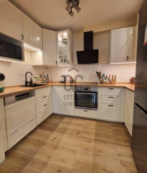 Eladó a 10.kerületben Kőbányán egy 2008-ban épült liftes társasház 1. emeletén, egy 79 nm-es, praktikus elosztású, igényes, 3 szobás, külön Wc-vel, kamrával és dupla erkéllyel is rendelkező, kitűnő állapotú lakás. Tágas és erkélyes nappaliján kívül, két szintén tágas hálószobával (melyek egyike szintén erkélyes), amerikai konyhával, kádas fürdővel, előszobával, külön Wc-vel és kamrával rendelkezik. A keleti tájolású nappali és az egyik szoba csendes utcára, míg a másik, nyugati tájolású szoba belső kertre néz. Az ingatlan egy éven belül teljes felújításon esett át, melynek keretében valamennyi burkolat cserére került, megújult a fürdő, a Wc, és új (még bőven garanciális) gépesített konyhabútor került beépítésre. További tárolást elősegítő szekrények is beépítésre kerültek, melyek a vételárban benne foglaltatnak. A nyílászárók műanyagok és redőnnyel felszereltek, a padlófűtést egyedi méréssel házközponti kazán látja el. A nemrégiben kamerarendszerrel és új postaládákkal valamint friss lépcsőházi festéssel ellátott három szintes szigetelt társasház nagy belső udvarral rendelkezik, mely játszótérrel is rendelkezik. A közös költség átlagban 25 000 Ft, mely a fűtési és vízmelegítési díjat is magában foglalja. Az utcai parkolás megoldott, de igény esetén a házban garázshely és felszíni beálló egyaránt vásárolható vagy bérelhető. A környék ellátottsága mind szolgáltatások, mind közlekedés tekintetében remek, iskolák, óvodák, orvosi rendelők, gyógyszertárak, üzletek, a kerület központja és busz valamint villamos és vasúti közlekedés is sétatávolságon belül találhatóak.Ha felkeltettem érdeklődését, várom hívását!