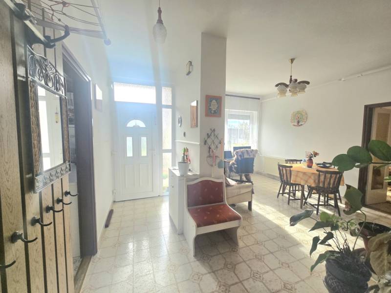 Panorámás, egy szintes, 3 szobás családi ház eladó Zalaegerszeg egyik legkeresettebb részén – ÚjhegyenRitka ajánlat: 109 m² lakótér • 1485 m² telek • kifejezetten jó külső állapot • sík terület • garázs, műhelyEgy kivételes adottságú, gondosan karbantartott, hangulatos, panorámás otthon keresi új tulajdonosát – olyan vevőt, aki értékeli a nyugalmat, a nagy teret, a természet közelségét, és a minőségben megmutatkozó gondoskodást.A ház egyszintes, jól átgondolt elrendezésű, három szobával, tágas nappalival, hangulatos kertkapcsolattal, 1485 m²-es, gondosan kialakított udvarral, ahol minden részletre figyeltek – gondozásmentes kerítés, esztétikus zöldfelület, gyümölcsfák,kiskert, pince, garázs, műhely, melléképületek.A telek sík, könnyen kezelhető, nem domboldali, aszfaltos utca, buszmegálló 1 perces sétára, kiváló infrastruktúrával – tehát nem kell kompromisszumot kötni a nyugalom és az elérhetőség között. A ház főbb értékei röviden:✅ 109 m²-es, folyamatosan karbantartott családi ház✅ 1485 m²-es, teljesen körbekerített, gondozott telek✅ 3 különálló, jól bútorozható szoba + nappali + kiegészítő terek✅ Kicserélt műanyag nyílászárók, redőny, szúnyogháló✅ B 30-as tégla falazat✅ Felújított tető teljes szerkezettel és lemezhéjazattal ✅ Gázcirkó + vegyes tüzelésű kazán – két fűtési rendszer✅ Kamra, garázs, műhely, kamerarendszer, 3 fázis✅ Bekerített udvar, virágos kert, termő gyümölcsfák ✅ A tetőtér beépíthető, a pincétől a padlásig beton lépcső vezet fel egy külön lépcscőházban✅ Száraz, hasznos pince + melléképületek✅ Tehermentes, rendezett tulajdoni lap → rövid időn belül birtokba vehető A környezet, ami valódi értékEgyik legélhetőbb része Zalaegerszegnek: csendes, biztonságos, rendezettTiszta időben Alpok-panoráma, természetközeli atmoszféraAszfaltos út, nem meredek, nem hegyoldali – könnyű megközelítés egész évbenBuszmegálló pár méterre – akár autó nélkül is élhetőKultúrált, kedves szomszédok – jó közösség, nyugodt lakókörnyezet Irányár: 79.500.000 Ft(A szomszéd telek és ház igény esetén külön megvásárolható – egyedi lehetőség, akár összenyitható birtokkal.)