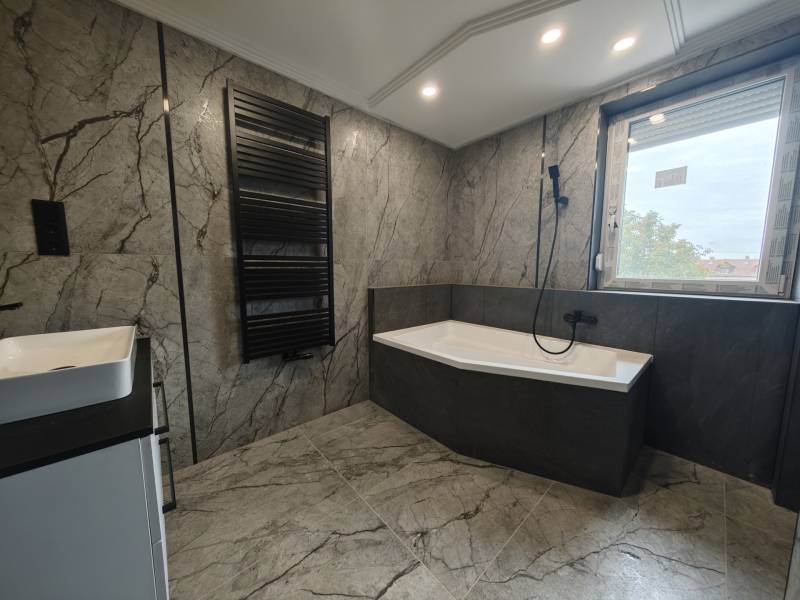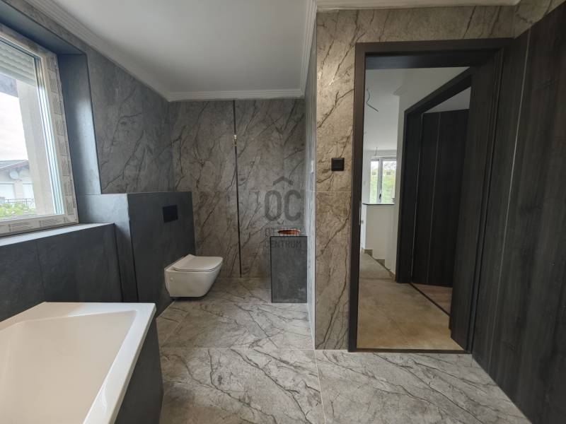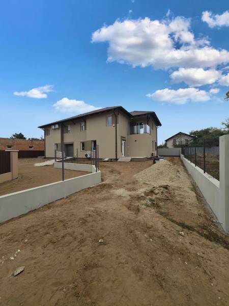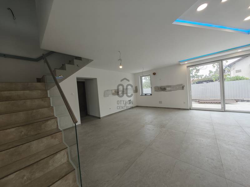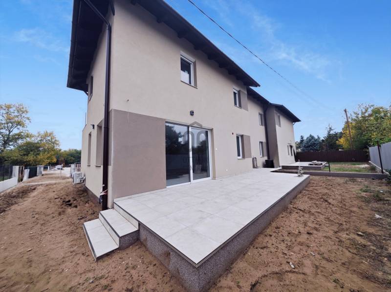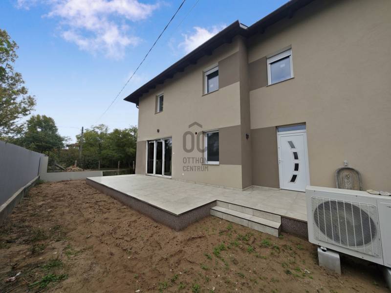 Vecsésen PRÉMIUM kivitelezésű ikerház eladó• újépítésű • nettó 145.38 m2 + 6.25 m2 erkély + 30 m2 terasz • hatalmas amerikai konyhás nappali • LED hangulat világítás• öt hálószoba (egy a földszinten, négy az emeleten)• két fürdőszoba (zuhanyzós és kádas)• fűtése: hőszivattyú, padlófűtés az egész házban• színezett hűtő-fűtő klímák • szennyes ledobó az emeletről• minőségi burkolatok • térkövezett járdák (még kialakítás alatt)• riasztó• telek: 332 m2Kivitelező saját részre épített, de végül nem beköltözött háza eladó tényleg prémium minőségben. Tömegközlekedés 5 perc gyalog 576, 578, vonat: 15-20 perc. Szinte azonnal költözhető!