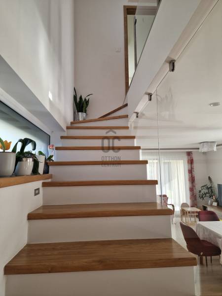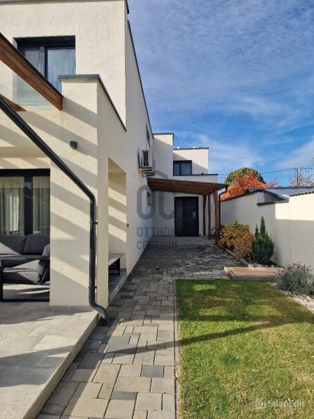 Debrecen csendes, de mégis központi elhelyezkedésű, felkapott városrészében, a Csigekertben várja új lakóit ez a gyönyörű, prémium kivitelezésű 2021-ben épült ház. A családosok számára ideális otthon, amely nemcsak tágas nappalijával és amerikai konyhájával, hanem egyedi tervezésével és modern megoldásaival is lenyűgöz. A konyhában található konyhasziget tökéletes helyszínt biztosít a családi összejövetelekhez, míg a világos terek és a beépített bútorok és szekrények maximális kényelmet nyújtanak. A házban található LED hangulatvilágítás és motoros redőnyök nemcsak a modern életstílust tükrözik, hanem a komfortérzetet is növelik. Az integrált szúnyoghálók lehetővé teszik, hogy a nyári estéket zavartalanul élvezhesse a kertben, ahol egy rendezett kert és egy jakuzzi található, ideális a pihenéshez és a kikapcsolódáshoz. Az automata öntözőrendszer gondoskodik arról, hogy a kert mindig szép és ápolt legyen, míg a biztonsági ajtó és a riasztórendszer garantálja a családja biztonságát. A környék ellátottsága kiváló, a közeli boltok, iskolák és óvodák minden szükséges szolgáltatást biztosítanak. A csendes utcákban való séták és a gyerekek biztonságos játékának lehetősége még vonzóbbá teszi ezt a helyet. A közlekedési lehetőségek szintén kedvezőek: a város tömegközlekedési hálózata gyors és kényelmes eljutást biztosít Debrecen belvárosába, valamint a környező településekre is. Ez a kertkapcsolatos lakás nem csupán egy ingatlan, hanem egy igazi otthon, ahol a család minden tagja megtalálhatja a számításait. Az okos otthon rendszer lehetővé teszi, hogy az ingatlan minden funkcióját távolról irányítsa, így a modern technológia és a kényelem tökéletes harmóniáját élvezheti. Amennyiben érdeklik a részletek, vagy kérdései lennének az ingatlannal kapcsolatban, bizalommal keressen fel minket! Az ingatlan megtekintése során szívesen válaszolunk minden felmerülő kérdésére, hogy Ön is megtalálja álmai otthonát.