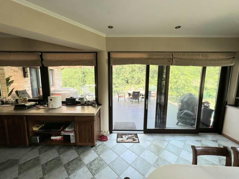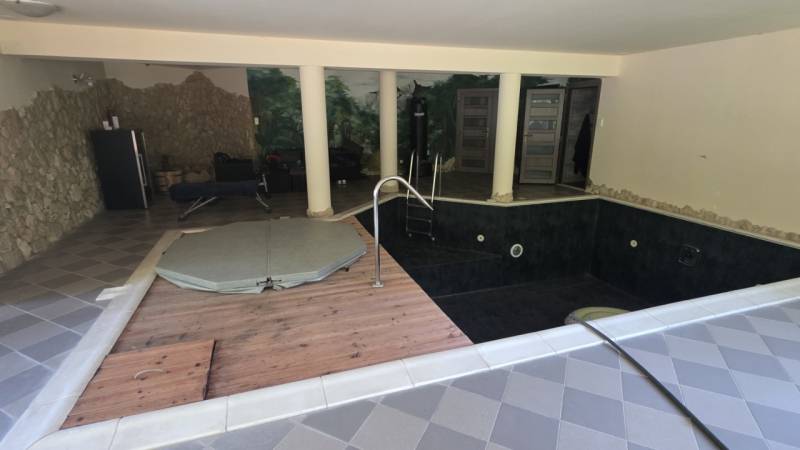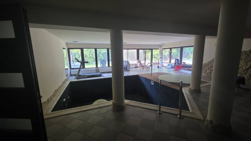 Veresegyház Hegyek városrészben kínáljuk eladásra ezt a minden igényt kielégítő, ÚJSZERŰ 391 m2-es családi HÁZAT, valamint 34 m2-es VENDÉGHÁZAT egy 1336 m2-es gyönyörűen gondozott, PARKOSÍTOTT telken.A jól átgondolt tervezésnek köszönhetően a hálószobák, és a hozzá tartozó fürdőszobák, wc-k jól szeparáltak az épület központi helyének számító rendkívül tágas, étkezős konyhától, és a világos nappalitól. Ez a 2 helyiség együtt 80 m2. Az igazi kikapcsolódást az alsó szinten található WELLNESS RÉSZLEG teszi teljessé, ahonnan a hatalmas nyílászáróknak köszönhetően remek kilátás nyílik a kertre. A 9x4 méteres medence és a mellette található jakuzzi hőszivattyús fűtéssel rendelkezik. Külön helyiségben található a szauna, és a zuhanyzó. Ugyanezen a szinten a 2 hálószoba mellett kialakításra került egy tároló, valamint egy tágas háztartási helyiség is.Az ingatlan másik különlegessége a csodaszép kertre, ill. a kültéri medencére néző, konyha-étkezőből nyíló 57 m2-es terasz.A vendégház 34 m2-es, saját konyhával, fürdőszobával, és garázzsal rendelkezik.A főépület garázsa 2 állásos, bentről is megközelíthető.További információért keressen nyugodtan, akár hétvégén is!
