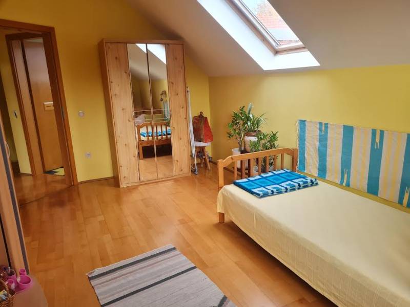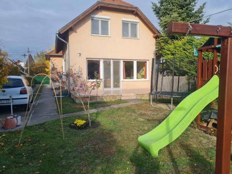 CSILLAGHEGY DUNA FELŐLI OLDALÁN 2004-BEN ÉPÜLT 5 SZOBÁS HÁZ ELADÓ!Csillaghegy Duna felőli oldalán 599 m2-es telken csendes mellékutcában eladó ez a jelenleg kétlakásos önálló családi ház.A ház nagyobbik része 2004-ben újonnan épült, DK-i tájolású, szép állapotú, belső kétszintes, terasz és kertkapcsolatos nappali, konyha, étkező, kamra, 3 hálószoba, két fürdőszoba van ebben a részben.A kisebbik része a 30-as években épült, DNY-i tájolású, földszintes, 1 nagy szoba, konyha, étkező, fürdőszobával. Ez a rész felújítandó, tetőtere igény szerint beépíthető.Mindkét részben minden közmű önállóan mérhető, külön bejáratú, de egy fal lebontásával a két rész összenyitható.2004-es műanyag Hofstadter nyílászárók vannak az épületben, 12 m2-es száraz pince, kondenzációs kazán, padló és radiátoros fűtés, szép beltéri ajtók, beépített konyhabútor gépekkel, nagy beépített szekrény, 25 m2-es terasz.Kiváló idős szülővel, vagy nagy gyerekkel költözőknek is! A teljes földszint a teraszok nélkül 113 m2, az emelet pedig 41 m2.A kert teljesen sík, nagy, a szomszédok rendezettek, kedvesek. A közlekedés kiváló, a busz 5 perc gyalog.Rugalmasan, bármikor megnézhető!