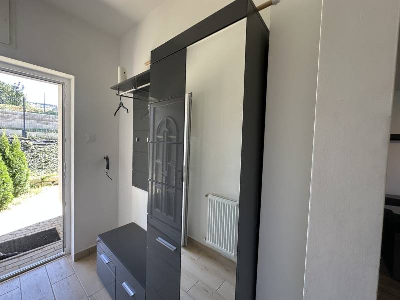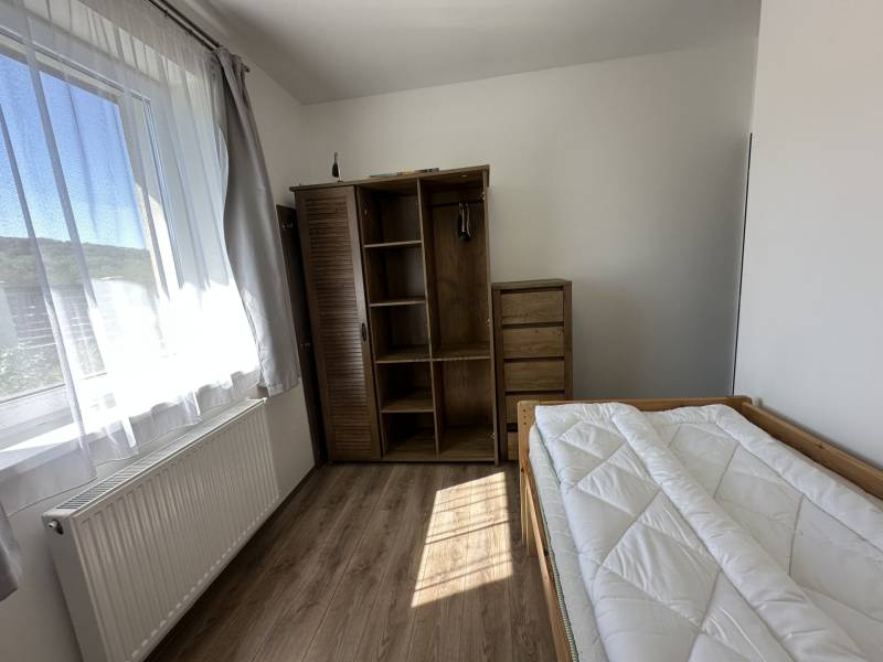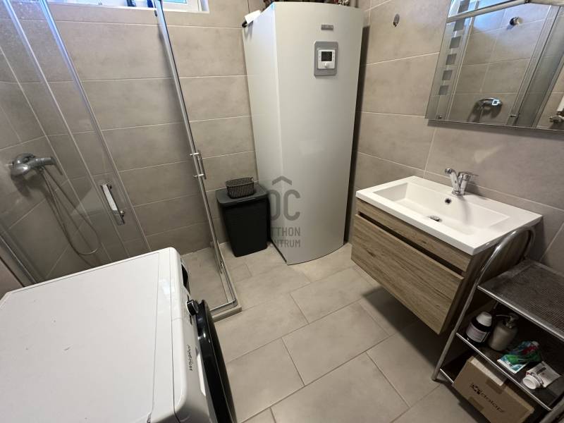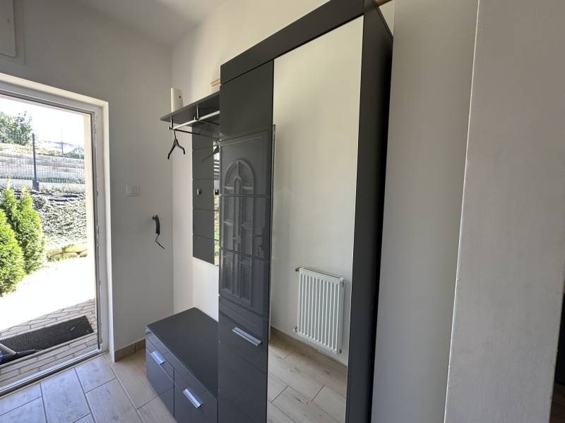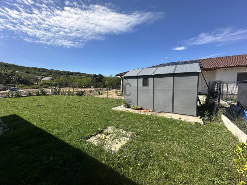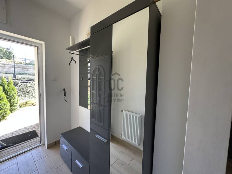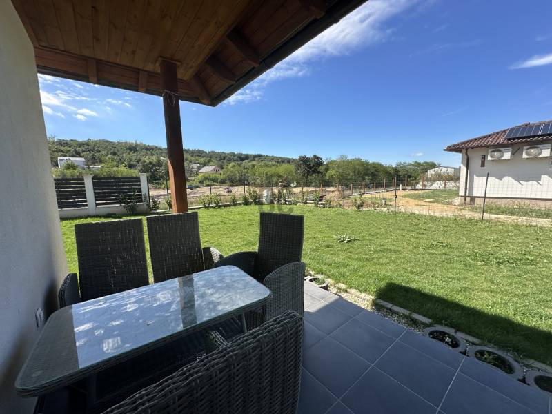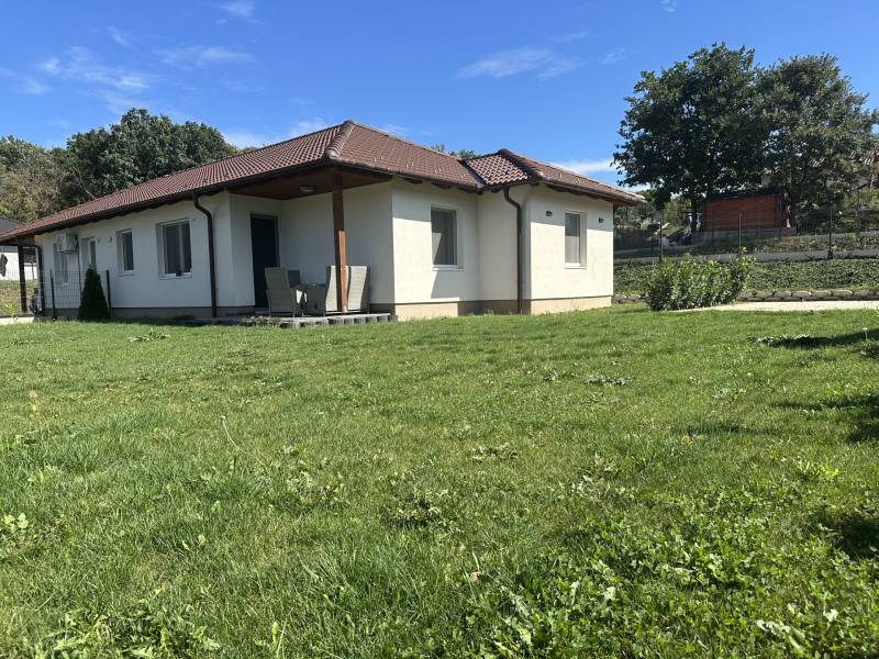 Pilisjászfalu , Somlyó-völgy területén parkosított kertben igényes, sarok telken ikerház rész eladó.PILISJÁSZFALU belterületén, csendes, erdős részen, a Somlyóvölgyi lakóparkban megfizethető, földszintes, 70 nm-es ikerház rész eladó.A ikerház rész ( társasházi lakás) 70 nm-es, saját 400 nm saját telekkel, amerikai-konyhás nappalival, három hálószobával, fürdőszobával, külön WC- kézmosóval, közlekedő lett tervezve és kivitelezve- 2021-ben került átadásra- A teljes telek nagysága 990 nm ebből egy 400 nm önálló rész tartozik a társasházi lakáshoz.- A lakás ( ikerház rész ) teljesen önálló HRSZ számmal rendelkezik.- Kert kialakítva, rendezett, füvesített, öntözőberendezés, dísznövényekkel beültetve- A telek teljesen bekerítve, beton alappal, támfalakkal.- Összközműves- Fűtés nappaliban, fürdőszobában, közlekedőben padlófűtés , a szobákban radiátor- Hőszivattyú adja a melegvizet és a fűtést. ( BOSCH típusú hőszivattyú) - Átlagos rezsi költség alacsony- Fedett terasz- Burkolat a 15nm-es teraszon kültéri fagyálló lap- A lakásokon belül a burkolat a szobákban laminált lap, a többi helyiségben járólap- Hűtő- fűtő klíma beépítve 3,5 KW- Műanyag nyílászárók, minden ablakon szúnyogháló és redőny- Elektromos kapu- autóbeálló díszburkolattal burkolva- kerti csap- padlásfeljáró, tárolásra kialakítható padlás- a fedett teraszra a nappalin juthatunk ki - konyhabútor egyedi tervezéssel készült,- konyhában minőségi műszaki berendezés- egy hálószoba valamint két külön álló lakószoba lett kialakítva- Birtokba adás 1 hónap - Az épület sáv alapozással épül, 30-as N+F kerámia falazó blokkból készült.- 14 cm-es hőszigetelő vakolati rendszerrel kiegészítve, fehér színű dörzsölt nemes vakolattal- Válaszfalak 10-es tégla- Tetőfedés \"TERRAN\" cserépfedés- Víz-hang és hőszigetelés a megfelelő vastagságban.- Külső nyílászárók háromrétegű üvegezéssel, hőhíd-mentes műanyag.- hangszigetelt fal választja el a két lakást egymástól- teraszajtó középen felnyíló négy osztású-bejárati ajtó acélszerkezetes biztonsági- Elektromosság 1 x 32 A, új villanyórával