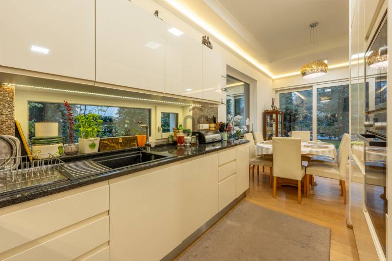Eladásra kínálok Adyligeten, a II. kerületben egy 200 m²-es, 4 hálószobás, modern családi házat 729 m²-es telken.A ház 3 méteres belmagasságával, tágas tereivel és minőségi anyaghasználatával kiváló otthont nyújt többgyermekes családok számára is.A nappali–konyha–étkező 50 m²-es, négy különnyíló hálószoba (16 m², 12 m², 18,7 m², 17 m²) és több terasz (25,4 m², 14 m², 16,2 m², 9 m²) tartozik hozzá, amelyek közvetlen kapcsolatot biztosítanak a kerttel.A fűtésről és hűtésről Daikin hőszivattyús rendszer gondoskodik, mennyezeti fűtőszálakkal és padlófűtéssel kombinálva, geo áramról, kedvezményes tarifával.A havi átlagos energiafogyasztás rendkívül kedvező (kb. 29 000 Ft/hó), a vízfogyasztás kéthavonta kb. 10 000 Ft.A ház 15 cm-es szigetelést és ürömi mészkőburkolatot kapott.A háromrétegű nyílászárók kívül antracit színű fém, belül fehér műanyag kivitelűek, motoros zsalúziákkal ellátva.Riasztórendszer és távfelügyeleti bekötés is kiépítésre került.A belső terek természetes tölgyfa svédparkettával, a vizes helyiségek nagy méretű hidegburkolatokkal készültek.A konyhában magasfényű világos bútorok és beépített Bosch gépek találhatók.A gondozott, nagy ősfás kertben kerti tároló kis ház is helyet kapott.Adyliget kiválóan megközelíthető tömegközlekedéssel és autóval is: a 10-es út és a környék főbb közlekedési útvonalai gyors összeköttetést biztosítanak Budapest belső kerületeivel és az M0-ás körgyűrűvel.A környéken bevásárlási lehetőségek, orvosi rendelő, gyógyszertár, iskolák és óvodák könnyen elérhetők.A környezet csendes és rendezett, a levegő tiszta, a zajterhelés minimális.Ez a környék ideális választás azoknak, akik városi kényelemre és természetközeli életre egyaránt vágynak.További részletekért hívjon mielőbb!Egyedi igényekre szabott lakáshitelekkel állunk rendelkezésére. Bankfüggetlen Hitel Centrumunk az országban elérhető összes bank és hitelintézet ajánlatát versenyezteti az Ön számára díjmentesen.Munkatársaink nagy szakmai tapasztalattal várják Önt az előre egyeztetett időpontban akár a normál munkaidő után is.