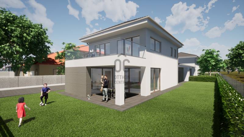 Érd kedvelt részén Fenyves -Parkvárosban eladó egy 174 nm-es Nappali + 4 szobás ,dupla komfortos dupla garázsos kétszintes ikerházfél .A telek utcafronti részén, kisebb kerttel rendelkező másik épület referencia száma:U0047612 ,Ára: 185.000.000 Ft.Méretében és elrendezésében teljesen azonos a két ikerház fél, egyben is megvásárolható.Kiváló lehetőség összeköltözéshez vagy cégközpont kialakításhoz.1304 nm-es telken található a két egymástól független, kivitelezésben, tervezésben és műszaki tartalomban prémium minőséget képviselő ingatlan, amely közel nulla energia igényű. Az épületek kizárólag a duplagarázsoknál érintkeznek egymással, egyéb közös falrész nincsen.A házhoz tartozó önálló kertrész:539,2nmAz építkezés kb. 90%-os készültségi fokon áll, a folytatás a vevői igények alapján történik.A burkolatok és szaniterek kiválasztása, a leendő tulajdonos igényeihez fog igazodni.Várható költözés az adásvételi szerződés megkötésétől 6 hónap.Elrendezés :Földszint (80 m²)- 40 m²-es amerikai konyhás nappali étkezővel és kandallókiállással- 12 m²-es fedett terasz, amely közvetlen kapcsolatot teremt a kerttel- Különálló szoba, amely bármilyen célra alkalmas- Kamra, háztartási helyiség/mosókonyha, tároló, WC és fürdőszoba- Tágas előtér és közlekedő- 37 m²-es dupla garázs, elektromos kapuval és külön vízkiállássalEmelet (57 m²)- 3 hálószoba, mindegyikhez saját terasz (köztük egy 24 m²-es nagyobb terasz)- A szülői hálószobához gardróbszoba kapcsolódik- Fürdőszoba WC-velKert:- Minden olalon zárt,minőségi kerítés- Térkövezett bejáró (gépkocsi és gyalogos)- Elektromos kapu, kaputelefon- Tereprendezés, termőtalajterítés (kertészeti munkákat nem beleértve)Műszaki paraméterek: •Alapozás: vasalt beton sávalap (c/16/24 betonból, lábazat: Leier zsalukő, vasalvamixerbetonnal betonozva, betonminőség c/16/16, vasalt szerelőbeton 12 cmvastagságban c/16/16 betonminőség).•Falazat: 30-as Leier tégla felmenő falazat (nútféderes falazóelemekkel, Baumit falazóhabarcsba falazva).•Kandalló: a földszinten helyet kap egy Leier 20-as kandalló kémény.•Födém: a földszinten monolit vasbeton födém és lépcső; az emeleten láng- és rovarmentesített fagerendás födém gipszkarton borítással (szeglemezes tetőszerkezet), 30 cm hőszigeteléssel.•Nyílászárók: antracit színű 3 rétegű hő és hangszigetelt üvegezéssel ellátott fa nyílászárók, rejtett redőnytokkal, részben elektromos redőnnyel, részben manuális redőnnyel.•Hőszigetelés: a földszinti aljzaton 12 cm, külső falakon 15 cm normálpolisztirol, födémen 30 cm üveggyapot paplan.•Hűtés, fűtés, melegvíz: Elektromos üzemű hőszivattyús rendszer (hőszivattyús padlófűtés, hőszivattyús mennyezeti hűtés-fűtés). A melegvizet egy 200 literes HMV tartály biztosítja, elektromos hőpatron rásegítéssel. H-tarifa (3x20A) biztosítása a hőszivattyú részére. Nappali tarifa (3 fázis, 3x16A) biztosítása a lakás és kiegészítő fűtőpatron részére. •Központi porszívó előkészítése (porszívómotor és gégecső nélkül).Az ár tartalmazza a(z):•elektromos kapukat, •kerítést, •kaputelefont, •antracit színű, Hörmann márkájú, motoros elektromos garázskaput (távirányítóval),•térkövezett bejárót (gépkocsi és gyalogos), •központi porszívó előkészítését,•beépített bejárati ajtót, •beltéri ajtókat kilinccsel bruttó 90.000 Ft/db-ig,•szanitereket, csaptelepeket együttesen 1.200.000 Ft/lakás összegig,•beltéri hideg burkolatokat: bruttó 9.000 Ft/nm-ig,•beltéri meleg burkolatokat: bruttó 7.000 Ft/nm-ig,•villamossági szerelvényeket alap, fehér színben (Legrand),•beltéri glettelést és festést: kétszer glettelve, két rétegben festve, fehér színben,•csatorna és bádogos munkálatokat (antracit színben, alumínium anyagokkal) a tervekkel megegyezően.A lakások fajlagos hőveszteségtényezője a közel nulla energiaigényű épületek követelményszintjének felel meg.A vételár kulcsrakész állapotra vonatkozik és az 5%-os áfát tartalmazza.Várható befejezés: Az adásvétel megkötése után 6 hónappalAz Otthon Centrum teljes körű ügyintézéssel (CSOK Plusz, hitel, babaváró) áll az eladók és a vevők rendelkezésére .Az adásvételi szerződés megkötéséhez igény szerint megbízható ügyvédi közreműködést biztosítunk, és segítséget nyújtunk az adásvételhez kapcsolódó ügyek intézéséhez.A kivitelező megbízható cég, több évtizedes működése révén számos referenciával rendelkezik Érden és Pest megyében, amelyek igény szerint megtekinthetők.CSOK igénybevehető, mivel céges építkezés.