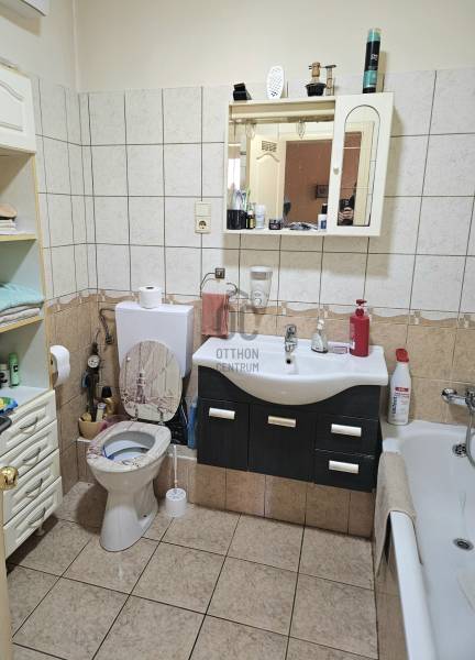 Budapest XVIII. kerületében, Újpéteritelepen, a Nemes utcában rendezett társasházban kínálunk megvételre egy 64 m²-es, 3 külön nyíló szobás, utcára néző, világos és jó elosztású első emeleti lakást.A ház 2003-ban épült, tégla szerkezetű, jó állapotú épület, mindössze 18 lakással. A társasház földszintjén üzletek találhatók – többek között pékség, virágbolt, dohánybolt és egy Otthon Centrum iroda is –, így minden fontos szolgáltatás karnyújtásnyira elérhető.A első emeleten található lakás tehermentes, gyorsan birtokba vehető, és hitelezhető.A jelenlegi bérlő november végéig lakja az ingatlant.A lakás helyiségei:-nappali-étkező: 21,75 m²-konyha: 7,75 m²-két külön nyíló hálószoba: 10,7 m² és 9,99 m²-gardrób: 4,39 m²-előszoba: 4 m²-fürdőszoba-WC: 5,01 m²A fűtésről 2017-ben cserélt, kondenzációs gázcirkó gondoskodik, amelynek idei nagy karbantartása már megtörtént. (Gáz számla éves szintem kb 80.000 ft.)A lakásban klíma is található, valamint műanyag nyílászárók kerültek beépítésre.A tisztasági festés a vételár részét képezi.A villany- és gázórák feltöltőkártyás rendszerűek, a közös költség 20 160 Ft/hó.A lakáshoz közös tároló is tartozik.Hitelezhető, tehermentes .Parkolás az utcán ingyenes, de garázs vagy autóbeálló is bérelhető, vagy akár megvásárolható igény szerint.A környék csendes, rendezett és biztonságos.A közlekedés kiváló: néhány perc sétával elérhető több buszjárat, amelyekkel gyorsan megközelíthető a Kőbánya-Kispest metróvégállomás és a belváros is. Autóval az Üllői út közelsége révén a reptér és az M0-ás is könnyen elérhető.Amennyiben egy kiváló elhelyezkedésű, jól karbantartott, azonnal költözhető lakást keres a XVIII. kerületben, ez a lehetőség Önnek szól!Kérem, keressen bizalommal a részletekért és a megtekintés egyeztetéséért.Ez az ingatlan a \"Felező csomag\" megbízási portfólióhoz tartozik. Részletek az Otthon Centrum weboldalán.