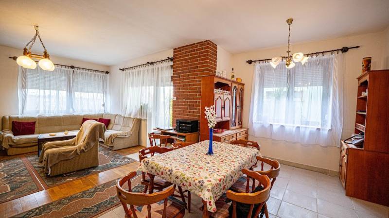 CSALÁDOSOK FIGYELEM!! Paks szívében, a felkapott Lakótelepen kínálunk eladásra egy igazán különleges, használt házat, amely tökéletes választás lehet számodra és családod számára. Az ingatlan 150 m2-es alapterületével és 860 m2-es telekméretével bőséges teret biztosít a mindennapi élethez. A házban öt tágas szoba található, 2 konyha, 2 fürdőszoba így minden családtag számára kényelmes és privát teret biztosít. A világos nappali a családi összejövetelek központja lehet, ahol együtt élvezhetitek a közös pillanatokat. A fürdőszoba jól megtervezett, így a reggeli rohanásokban is praktikus megoldásokat kínál. A 10 m2-es terasz ideális helyszín a pihenésre, ahol a reggeli kávé mellett élvezheted a napfelkeltét, vagy a nyári estéken a barátokkal való összejöveteleket. Az ingatlan állapota jó, a fűtést gáz (cirko) biztosítja, plusz villany, és vegyes kazán is. 2 szintnek külön van villany és gáz kedvezmény. Padló fűtés adja az egyenletes meleget, Míg a klíma az emeleten gondoskodik a kellemes hőmérsékletről a forró nyári napokon. A biztonsági ajtó pedig garantálja, hogy mindig biztonságban érezd magad. Minden ablak hőszigeteltre van ki cserélve. A ház 7 csm-es szigetelést kapott. A környék ellátottsága kiváló, hiszen a közeli boltok, iskola és óvoda mindössze pár perc sétára találhatóak. A központi elhelyezkedésnek köszönhetően a kitűnő közlekedési lehetőségek révén gyorsan elérheted a város többi részét, legyen szó autós közlekedésről vagy tömegközlekedésről. A csendes környék és a rendezett kert ideális környezetet biztosít a családi élethez, és a kisállattal költözhető lehetőség is vonzóvá teszi az ingatlant a házikedvencek szerelmesei számára. Ezen kívül a házhoz tartozik egy kerti tároló, amely segít rendben tartani a kültéri eszközöket. Az egész ház alatt szuterén van, amely sok tároló teret ad. A tetőterasz pedig extra lehetőségeket kínál, ha szeretnél egy kis zöld oázist kialakítani a saját ízlésed szerint. A nyugalom és a biztonság garantált, hiszen a környék csendes és rendezett, ideális hely a gyerekek számára, ahol szabadon játszhatnak. Ez a tehermentes ingatlan nemcsak egy ház, hanem egy otthon, ahol a család minden tagja megtalálhatja a helyét. Ha bármilyen kérdésed van, vagy szeretnéd megtekinteni az ingatlant, bátran keresd fel a megadott elérhetőségeinken! Ne hagyd ki ezt a remek lehetőséget, hiszen az álmaid otthona csak egy hívásnyira van!