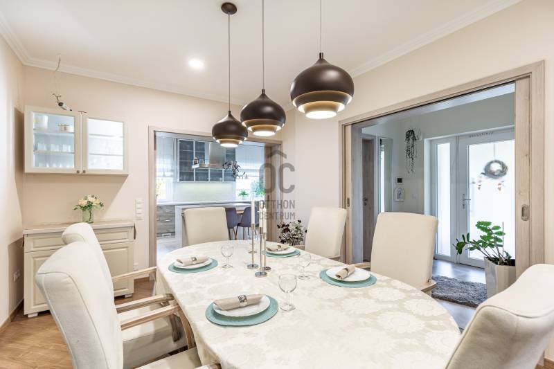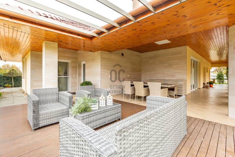 Telek: 2048 m²Lakóház: 150 m² hasznos alapterület + 30 m2 teraszMelléképület: 200 m² – közművesített, akár önálló lakóegységgé is alakítható________________________________________ A főépület minden részletében elegancia, kényelem és praktikumra való törekvés•Építés éve: 2016•38 cm-es hőszigetelt tégla falazat + 10 cm külső szigetelés, a födémen 30 cm hőszigetelés•3 hálószoba + nappali-étkező•Szülői hálószoba: saját fürdőszoba, gardrób, privát terasz•Hatalmas, világos konyha rejtett kamrával, beépített Miele kávéfőzővel, Lux víztisztítóval•Nagyméretű, fedett terasz Extrák:•Hőszivattyús fűtés- és hűtésrendszer, padló- és mennyezeti hőleadás, helyiségenként termosztáttal•Központi vízlágyító•Házközponti porszívó•Hővisszanyerős központi szellőztetőrendszer szénszűrővel•Öntözőrendszer, ablakokban automata balkonláda öntözőrendszer, robotfűnyíró•Minőségi, olasz burkolatok, egyedi készítésű bútorok•Alkonykapcsolós kül-és beltéri világítás•Finn és infraszauna, •Automata alumínium redőnyök, szúnyoghálók, elektromos kapu•18,5 kW-os napelem rendszer szaldó elszámolással, 3x20A áramlekötés•2 állásos fedett beálló, 30 m² terasz, minden szobából kertkapcsolat________________________________________ Melléképület:Lakófunkcióra alkalmas tervekkel rendelkezik – ideális vállalkozásra, vendégháznak vagy többgenerációs otthonnak.•200 m², három autó tárolására alkalmas garázzsal•Fürdőszoba, mosdó, több tárolóhelyiség•Önálló közművek, külön villanyóra, 3×20 A áramellátás•Vegyes tüzelésű kazán, padlófűtés + radiátoros fűtés•Napkollektoros rendszer 1000 literes tartállyal•Lakóépületté alakítás tervei rendelkezésre állnak•2 db 3 méter magas elektromos szekcionált kapu•Hűtő-fűtő klíma•Optikai internet a melléképületben is________________________________________ Egyéb:•Kamera rendszer•Akár bútorozottan is eladó•A kerítés teljes hosszában borostyánnal futtatva, így kialakítva a privátszférátSzolgáltatások és infrastruktúra:•Zsombó egyik legcsendesebb, szélső utcájában, minimális átmenő forgalom•A mindennapi élethez szükséges minden szolgáltatás és intézmény megtalálható a településen.Bevásárlási lehetőségek valamint orvosi rendelő, gyógyszertár, posta, pékség, termelői kispiac. A helyi bölcsőde óvoda és iskola kimondottan népszerűek a családosok körében.•Szegedtől 15 perc autóútra•Helyközi buszjáratok, a szomszédos Szatymazon vasútállomás is elérhető________________________________________Magánszféra, modern technológia és minőség minden részletben!Ár: 230.000.000 FtIrodánk teljes körű szolgáltatást nyújt, hitelügyintézői támogatással, jogi háttérrel, ügyfélközpontú hozzáállással.Tekintse meg személyesen! Várom hívását!06 70 454 2063