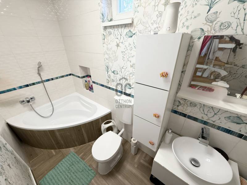 Eladó teljes körűen felújított, dupla komfortos családi ház nagy telekkel Vámospércsen!Kiváló elhelyezkedésű, igényesen felújított, belsőépítész által tervezett enteriőrrel rendelkező családi ház eladó, mindössze 5 perc sétára a városközponttól, bolttól és szintén sétatávolságra az iskolától/óvodától!A ház 17 méteres utcafronttal, új kerítéssel és elektromos kapuval rendelkezik, így biztonságos, zárt környezetet nyújt az egész családnak.Főbb jellemzők:•Teljes körű felújítás történt 4 évvel ezelőtt (víz-, villany-, szennyvíz-, gázrendszer teljes cseréje, teljes tetőszerkezet cseréje, alapokig visszabontva minden!) MINDENRŐL FOTÓDOKUMENTÁCIÓ KÉSZÜLT! •Új tetőszerkezet Bramac Merito Plus könnyített beton cseréppel•46 cm vastag vályogfalak, új nemesvakolattal ellátva•Teljes padlófűtés az egész házban + radiátoros kiegészítő fűtés•Új kombi gázkazán és 120 literes villanybojler biztosítja a melegvizet•3,5 kW-os Midea hűtő-fűtő klíma•Műanyag, 5 légkamrás, 2 rétegű nyílászárók, redőnnyel és szúnyoghálóvalElrendezés és helyiségek:•Tágas nappali – étkező – konyha egy légtérben, világos, barátságos hangulattal•szülői hálószoba saját zuhanyzós fürdővel•2 gyerekszoba, melyekhez saját fürdőszoba tartozik•Beépített szekrények a folyosón a praktikus tárolásért•30 m²-es terasz, víz- és lefolyókiállással – akár kültéri konyha is kialakíthatóKiegészítő helyiségek és extrák:•Külön bejáratú hátsó helyiség, jelenleg tárolóként funkcionál, de irodának vagy vendégszobának is tökéletesen alkalmas•10 m²-es pince, amely kiváló tárolásra vagy akár hobbyhelyiségnek is•1680 m²-es telek, ahol bőven jut hely kertnek, pihenésnek, akár medencének isKonyha és felszereltség:A konyha teljesen gépesített és beépített: mosó/szárítógép mosogatógép indukciós főzőlap sütő páraelszívó hűtőszekrényMinden szobában és a nappaliban TV és internet kiállás került kiépítésre, tökéletesen alkalmas modern családi élethez vagy home office-hoz is.További kérdés, megtekintés esetén hívjon, szívesen válaszolok!